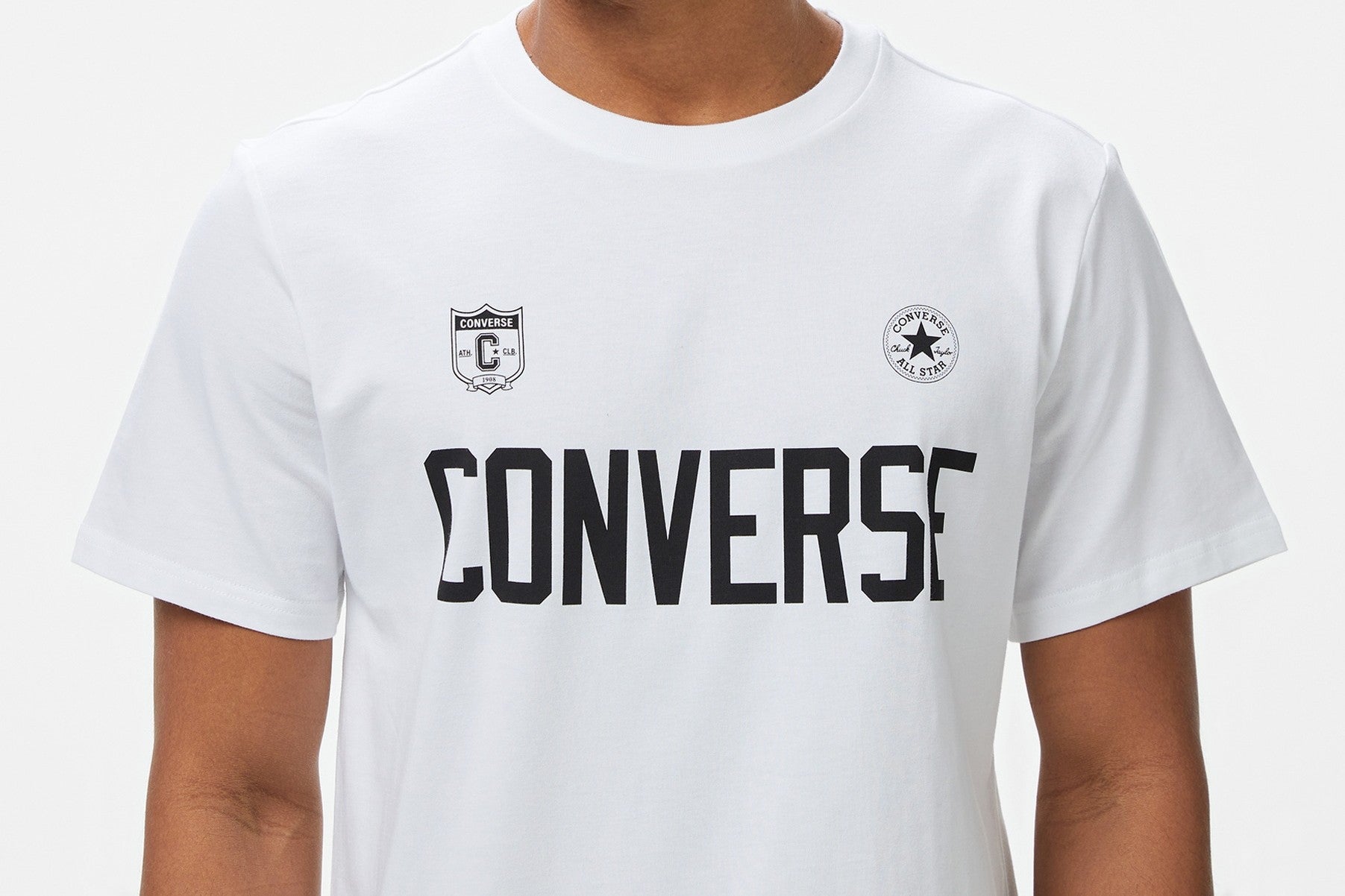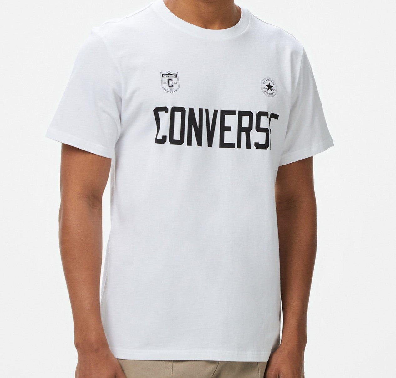 La camiseta Converse Retro Chuck Soccer Tee para hombre, con referencia 10027363-A02, es una prenda que fusiona el legado deportivo de Converse con un estilo urbano contemporáneo. Confeccionada en 100% algodón, ofrece una suavidad excepcional y una comodidad duradera, convirtiéndola en una opción ideal para el uso diario o para completar tu look casual con un toque de autenticidad.