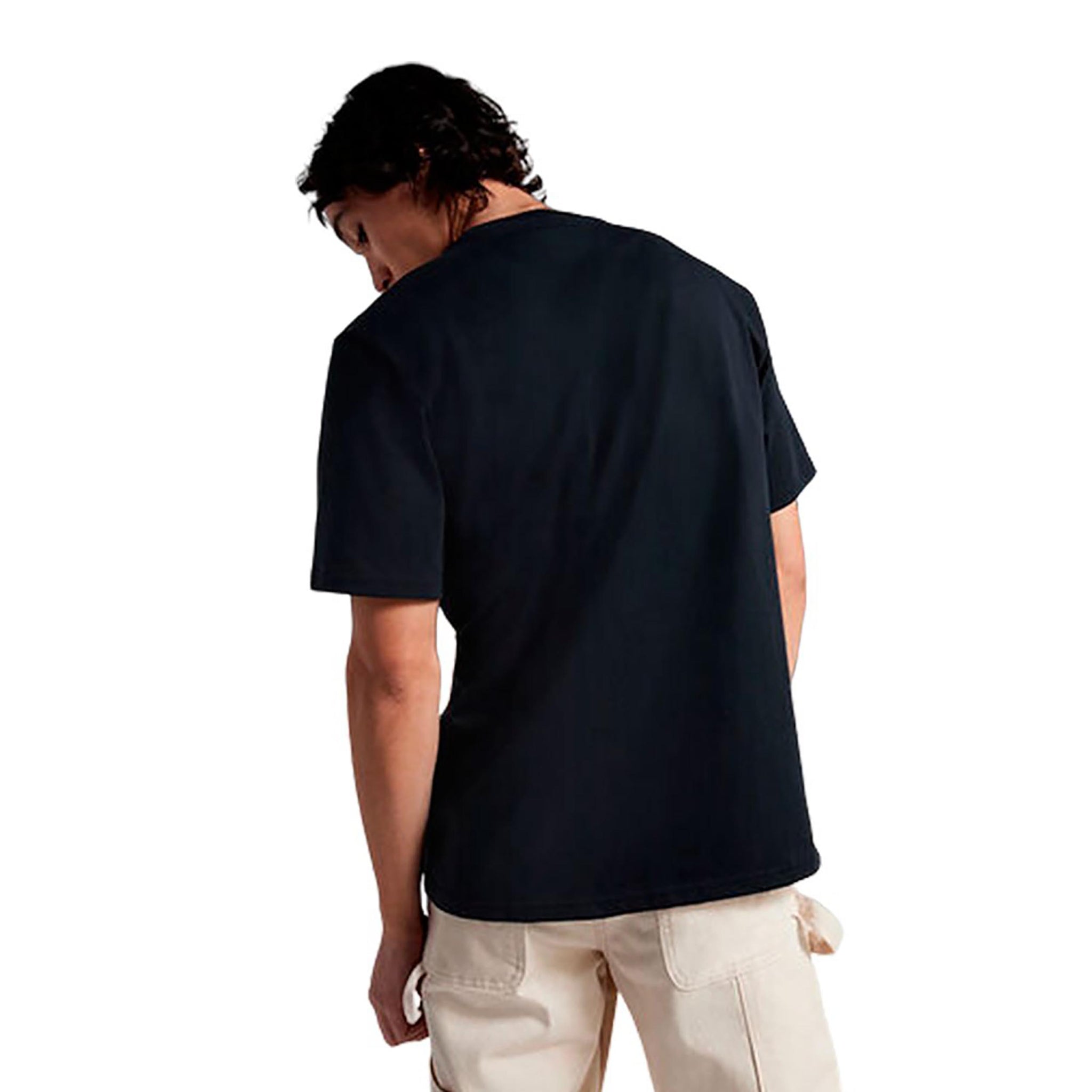 El color negro de la camiseta permite combinarla fácilmente con cualquier conjunto, ya sea para un look relajado con jeans o para un estilo más atrevido con pantalones deportivos. La camiseta no solo es una pieza esencial para tu armario, sino también una declaración de estilo, gracias a su diseño único y moderno que refleja la esencia de Converse.
