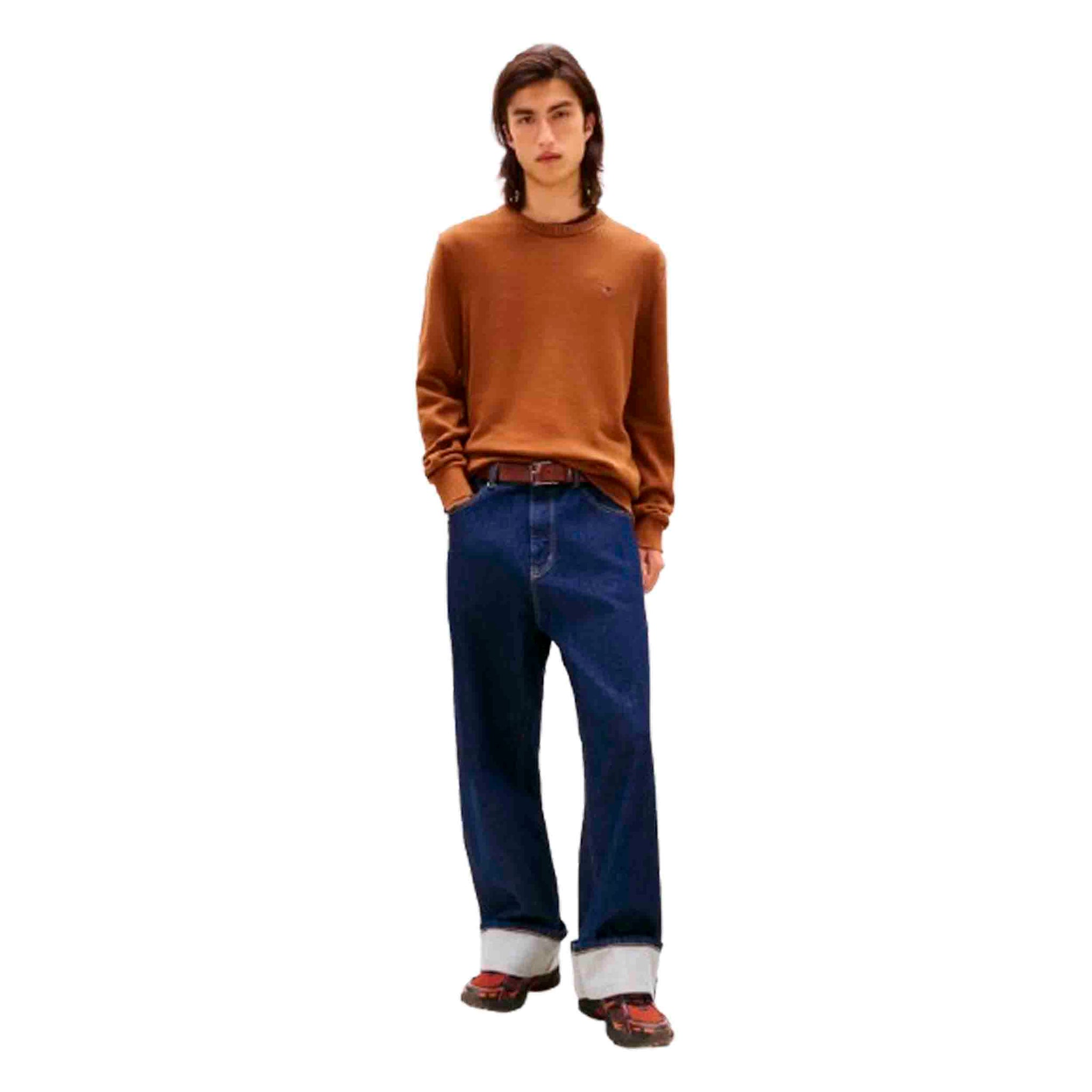 El detalle de marca en el pecho aporta presencia sin ser protagonista, lo que hace de este jersey una pieza versátil para looks casuales y combinaciones más pulidas. En marrón actúa como base neutra cálida que encaja especialmente bien con tonos tierra, denim claro y zapatillas blancas para un resultado urbano y cuidado.