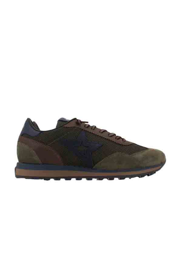 En la puntera, la parte trasera y laterales destaca la textura del ante de tono cooper cálido y caqui combinando zonas de rejilla que favorecen la transpirabilidad sin renunciar a la elegancia. El logo estrella lateral en tono contrastado (azul) añade identidad visual, mientras el interior combina piel y textil con plantilla acolchada para una pisada suave todo el día.