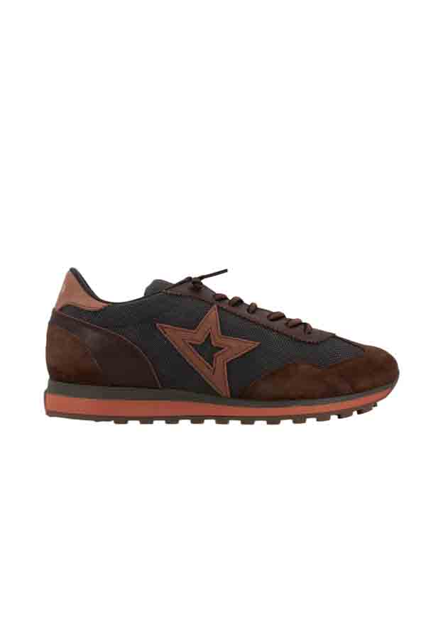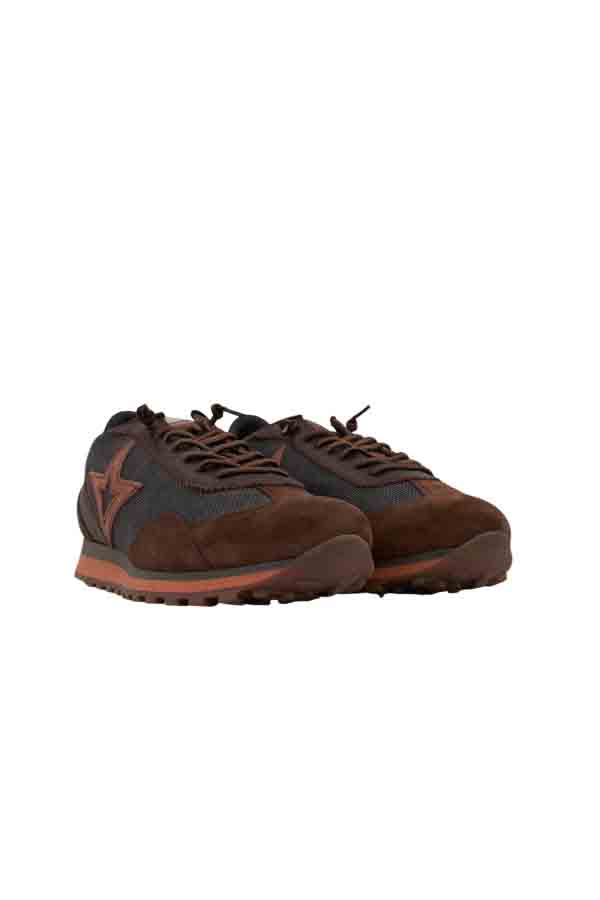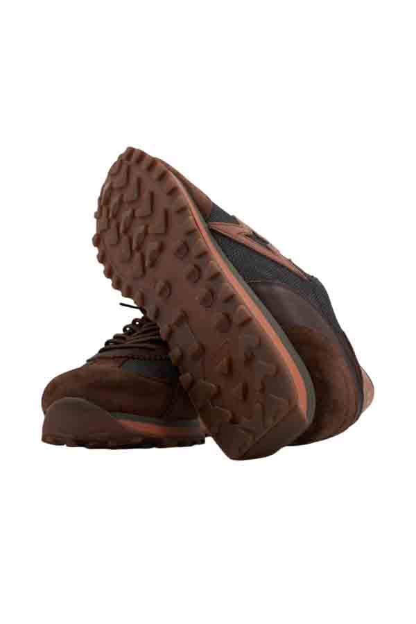 En la puntera, la parte trasera y laterales destaca la textura del ante de tono cooper cálido y marrón combinando zonas de rejilla que favorecen la transpirabilidad sin renunciar a la elegancia. El logo estrella lateral en tono contrastado (beige) añade identidad visual, mientras el interior combina piel y textil con plantilla acolchada para una pisada suave todo el día.