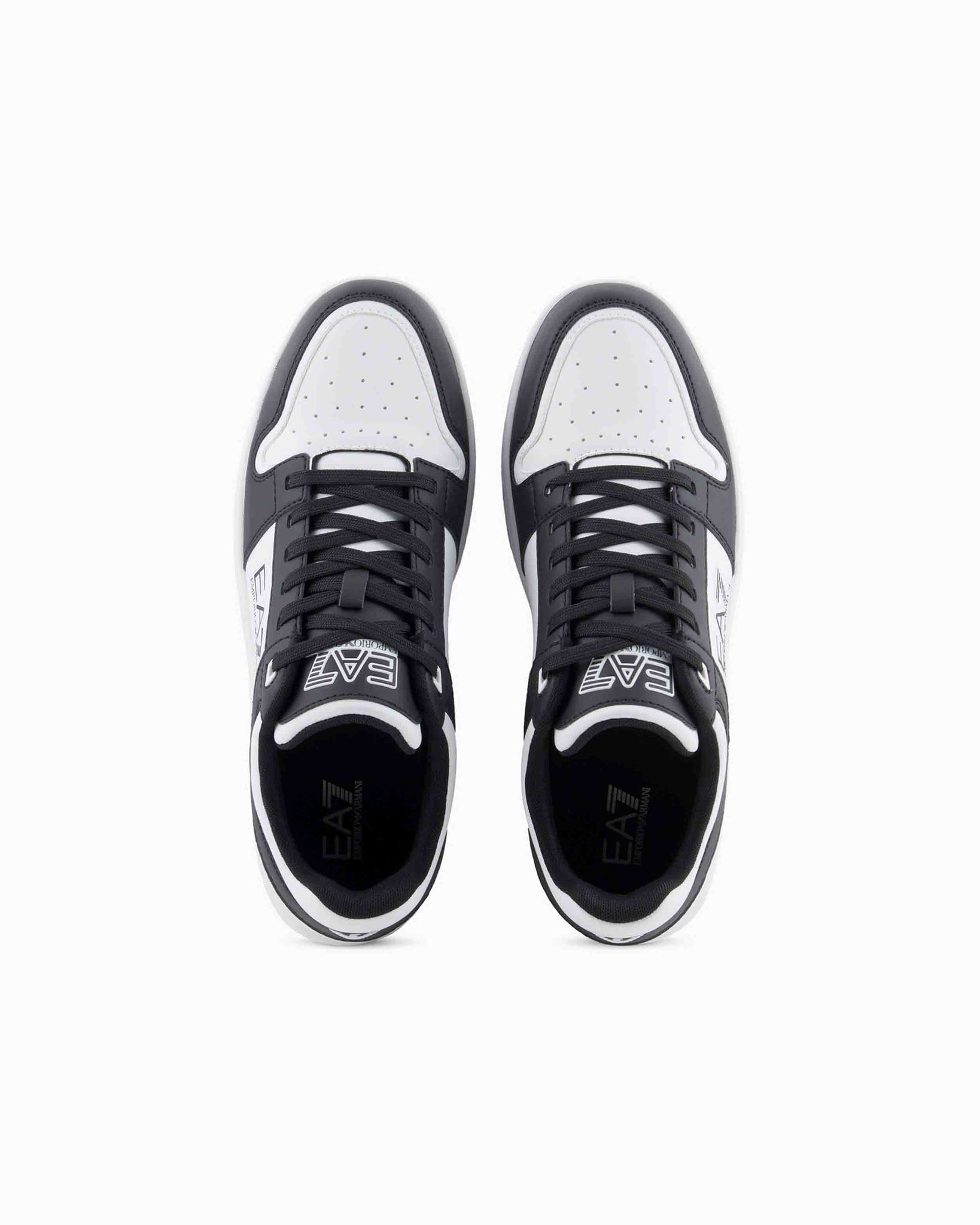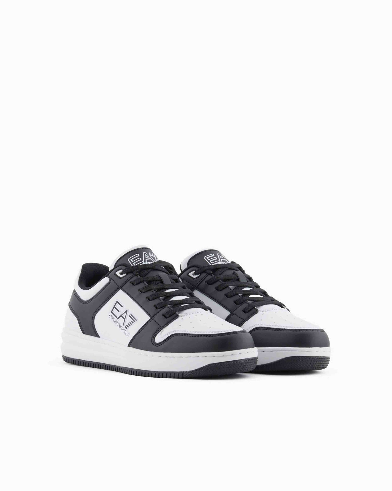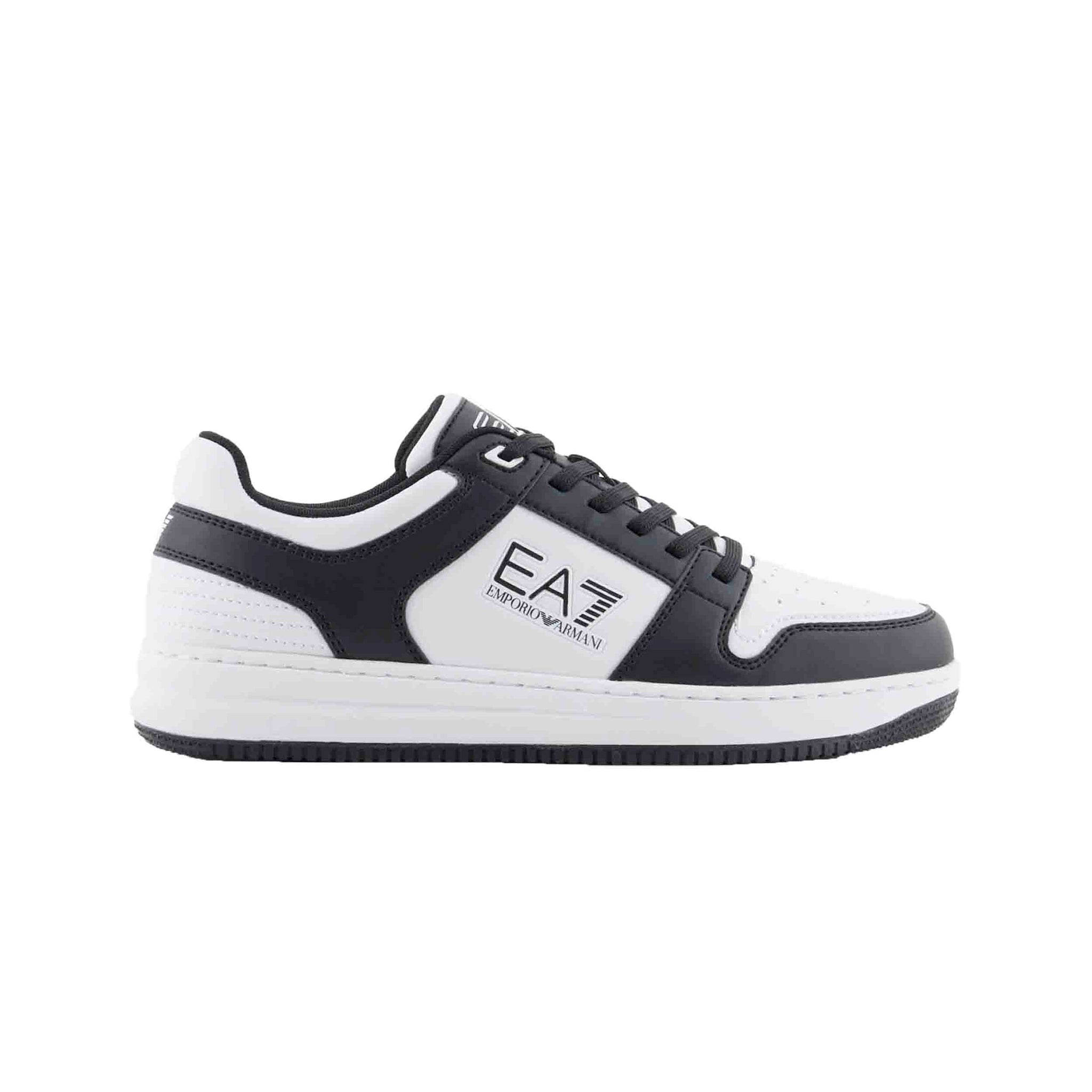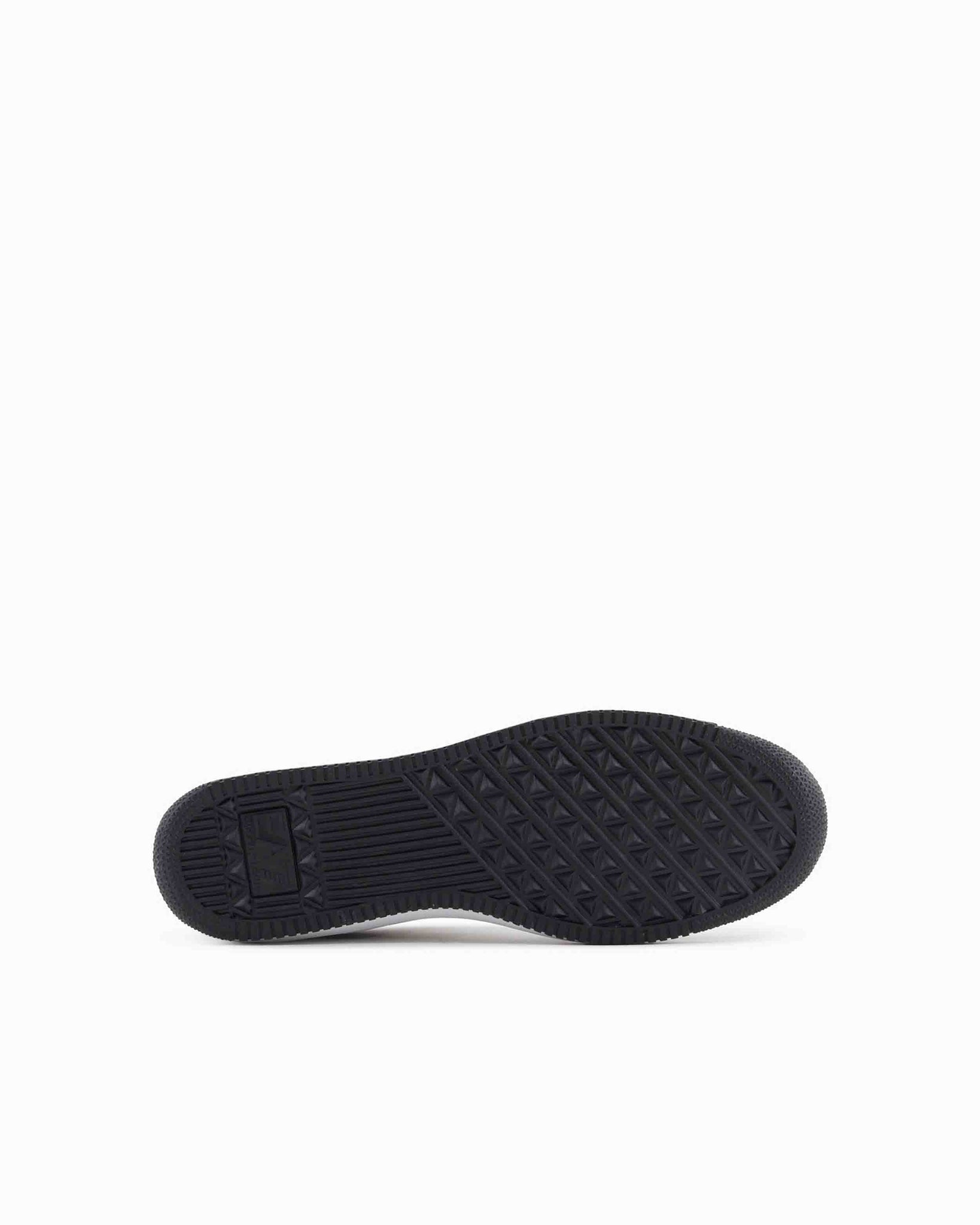 El logotipo de EA7 Emporio Armani está presente en el lateral de la zapatilla y en la lengüeta, reafirmando la autenticidad y el prestigio de la marca. Los acabados en tono plateado ofrecen un contraste sutil y sofisticado, complementando el diseño general de la zapatilla.