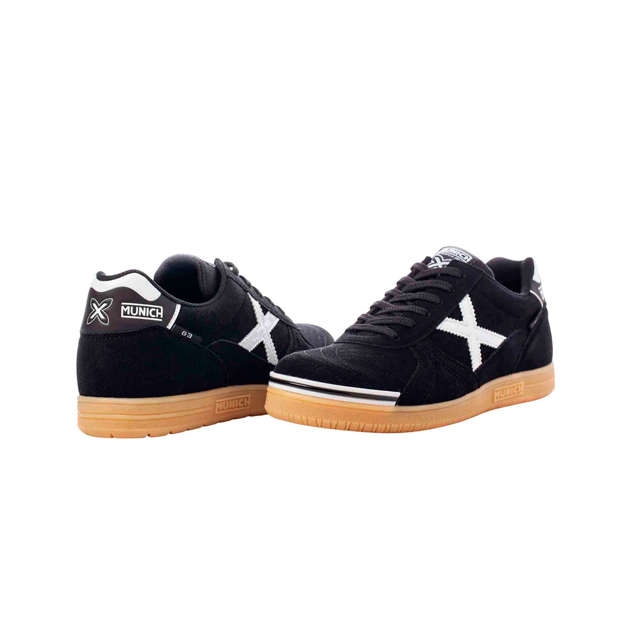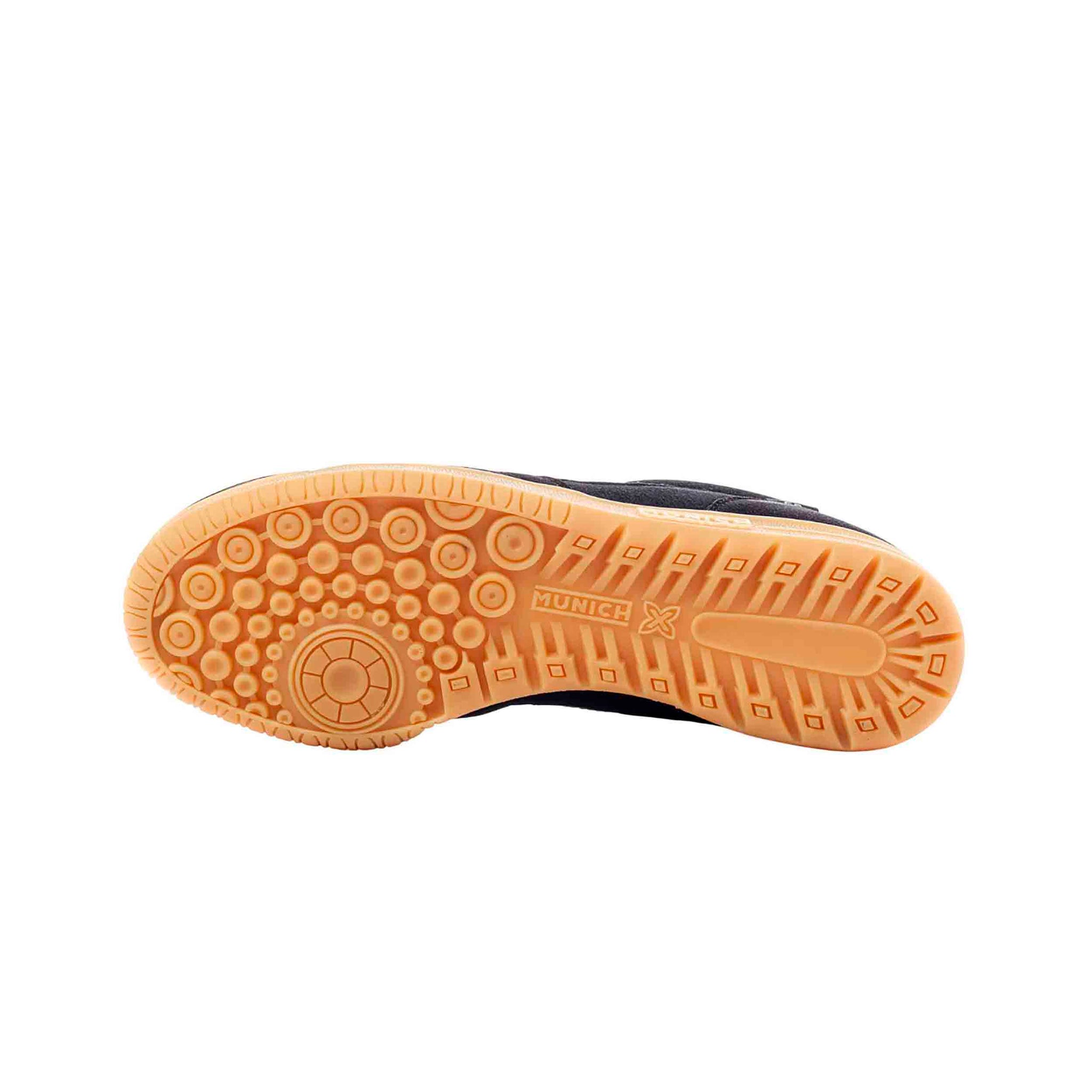 En cuanto al ajuste, el interior acolchado y la rejilla transpirable mantienen tus pies cómodos y frescos durante todo el partido. El diseño en negro con detalles en blanco —incluido el logo característico de Munich y la suela color caramelo— aporta un look elegante que funciona tanto dentro como fuera de la cancha.