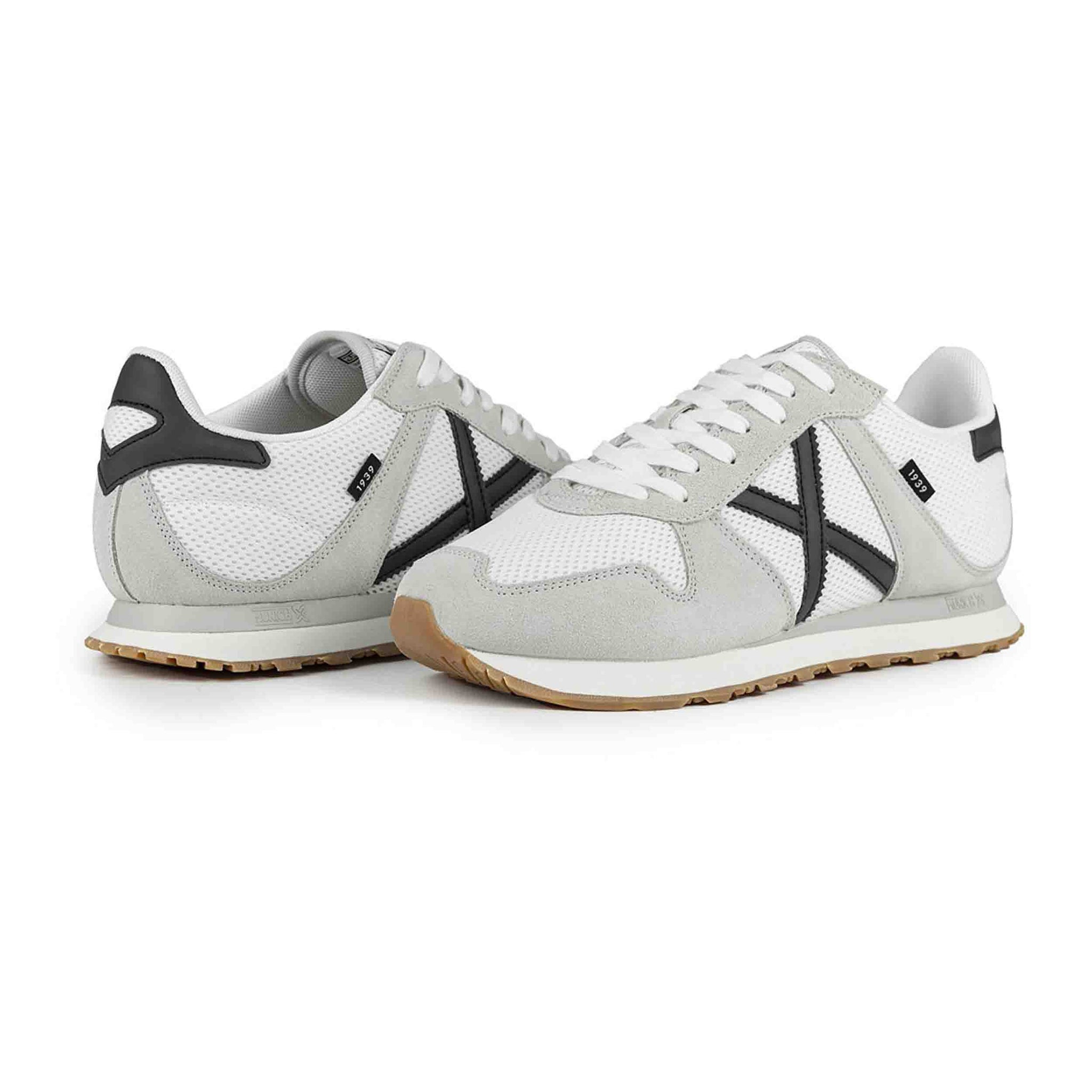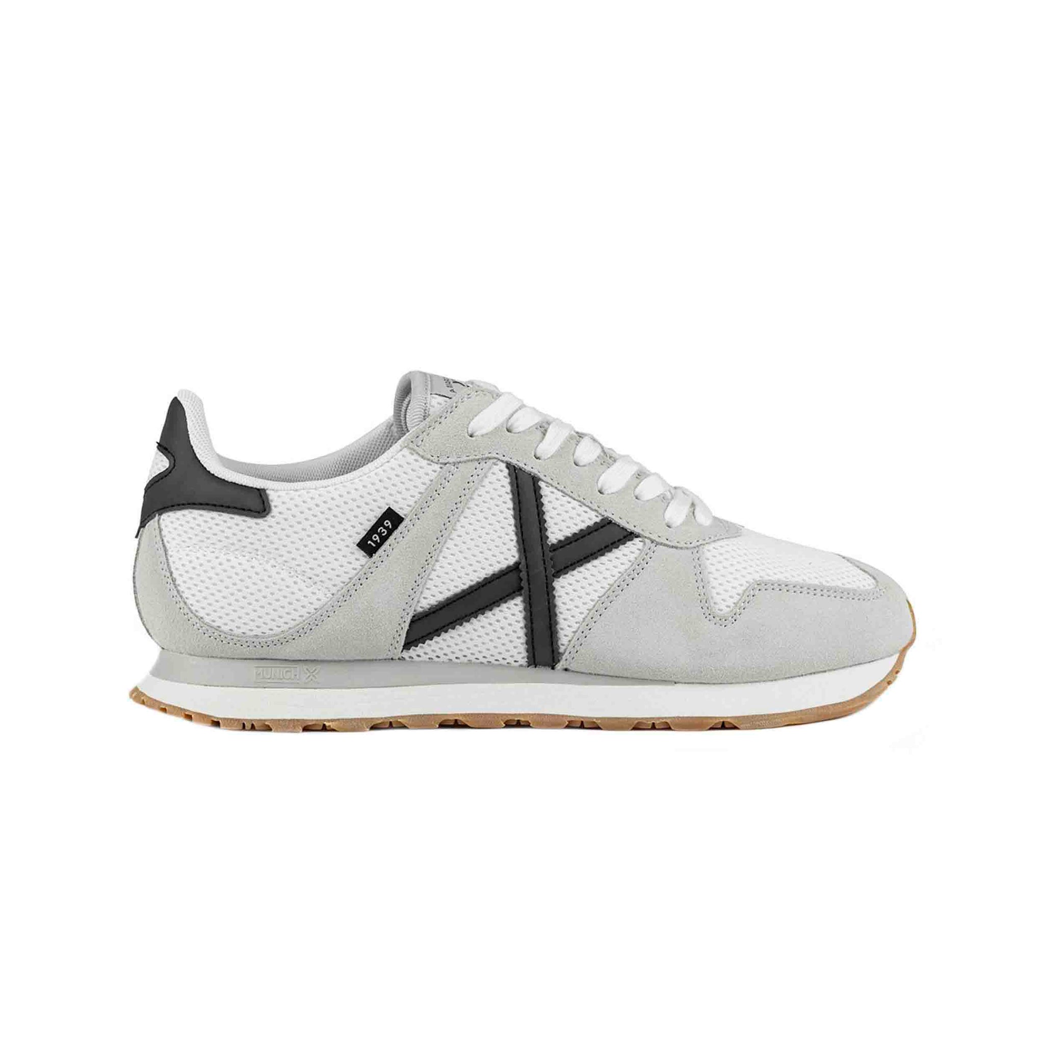 El contraste entre blanco y gris aporta un estilo limpio y versátil, ideal para cualquier ocasión. Los detalles característicos de Munich, como la icónica “X” en los laterales y los acabados cuidadosamente trabajados, refuerzan su identidad deportiva y urbana.