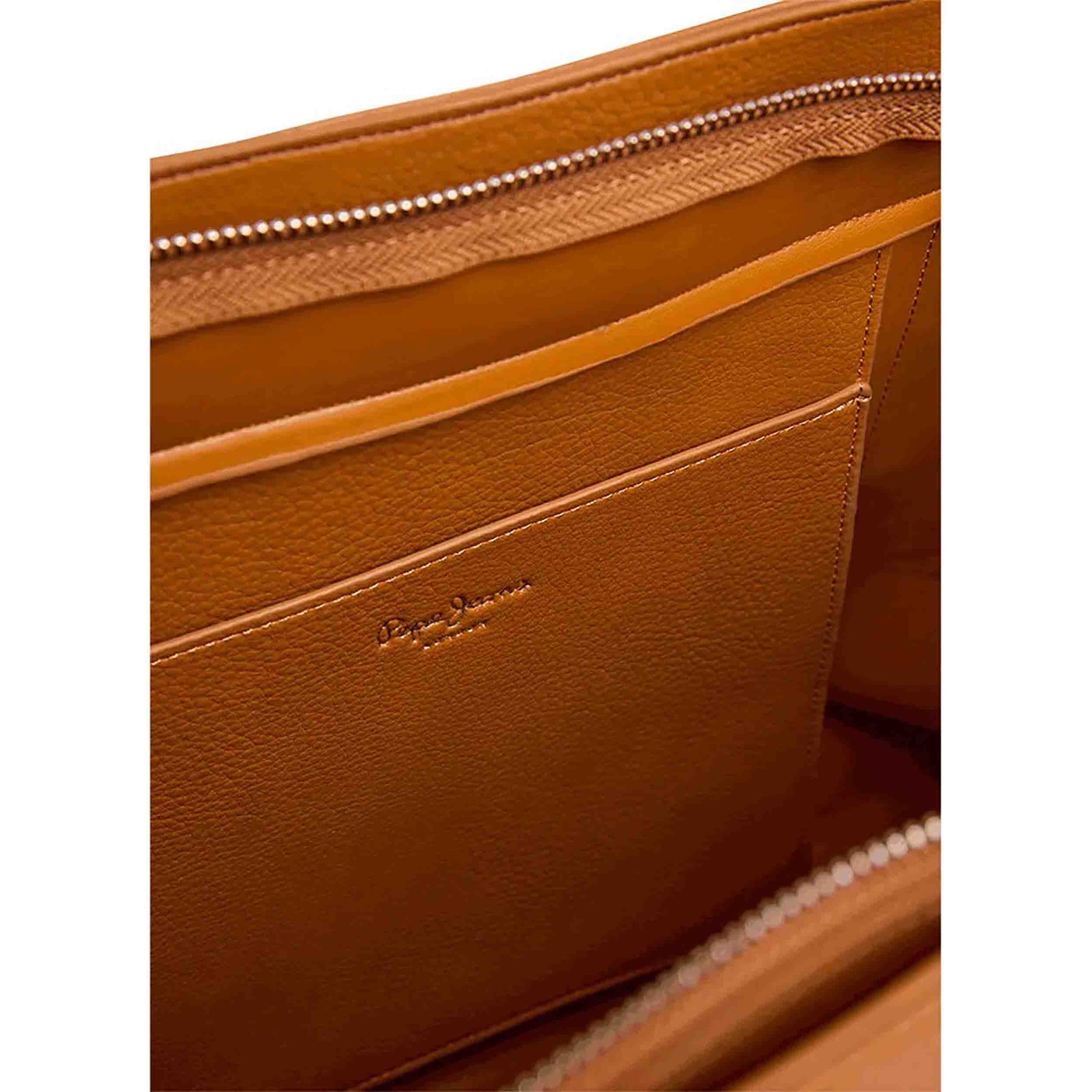 Los acabados metálicos en tono plateado aportan un contraste sutil y elegante al diseño general del bolso. El logotipo de Pepe Jeans está discretamente ubicado en la parte frontal, reflejando la calidad y el prestigio de la marca sin resultar ostentoso. Las cremalleras y cierres son robustos, garantizando una larga vida útil y seguridad para tus pertenencias.