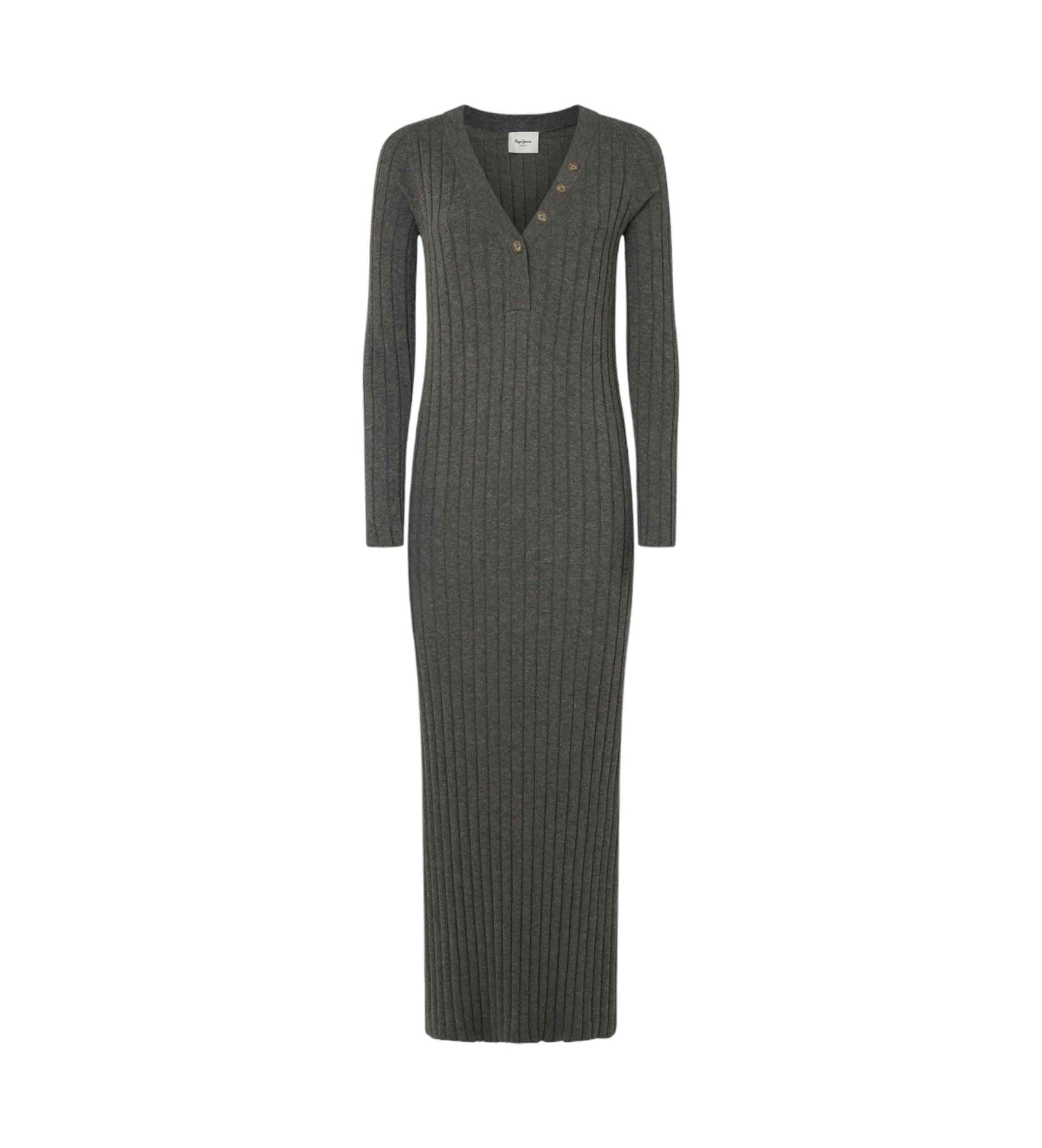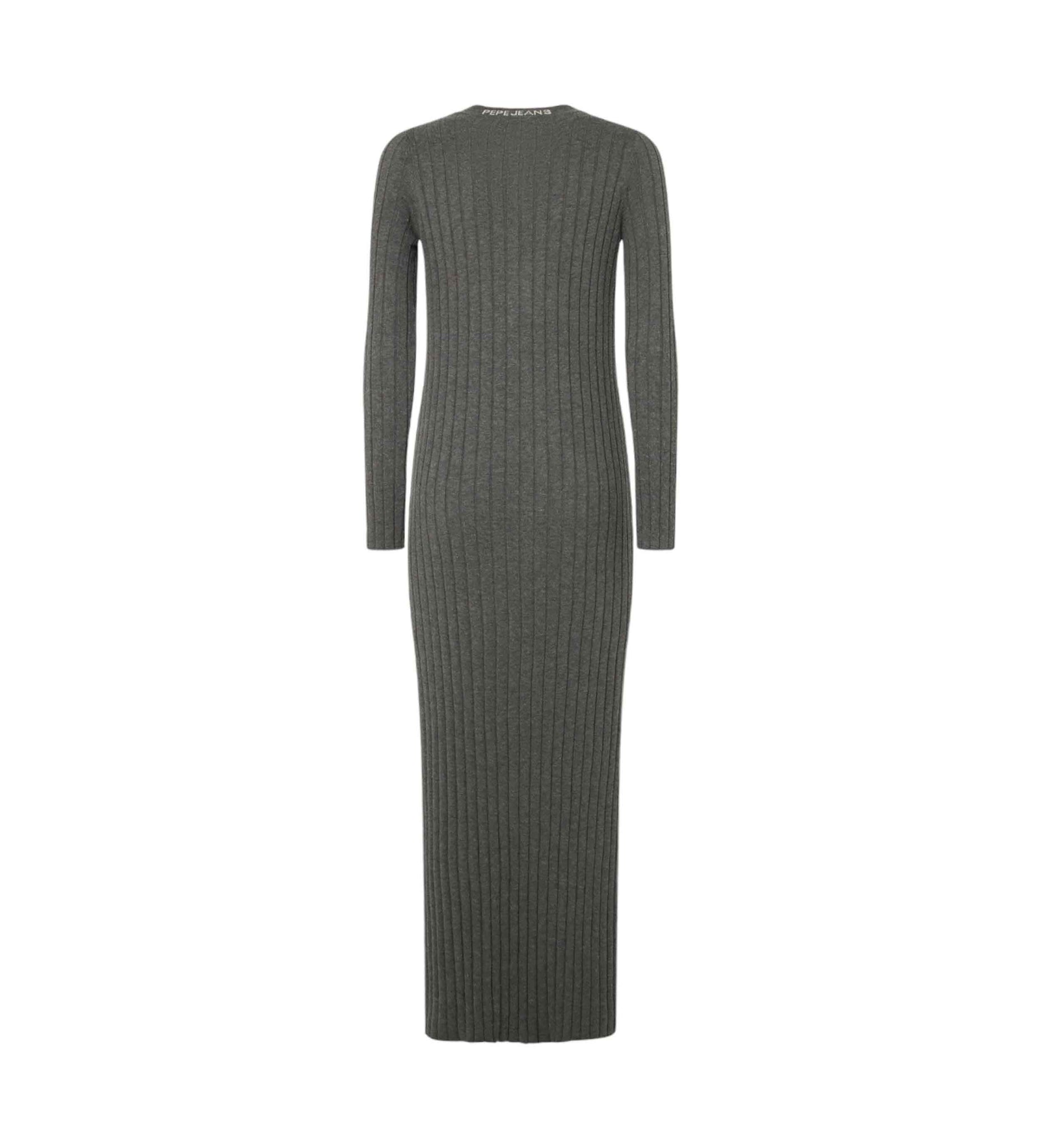 Este vestido largo presenta un diseño de columna que realza la silueta con elegancia. Confeccionado en un suave tejido de punto, ofrece comodidad y estilo. Las mangas largas y el cuello de camisa con botones añaden un toque clásico y refinado. Perfecto para lucir una apariencia sofisticada y versátil en diversas ocasiones, desde eventos formales hasta salidas casuales.