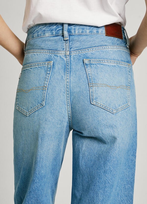 El parche metálico con el logo PEPEJEANS en el bolsillo trasero refuerza la identidad de la marca, aportando ese toque de exclusividad que buscas. Además, estos jeans han sido fabricados bajo prácticas sostenibles, utilizando materiales que respetan el medio ambiente.