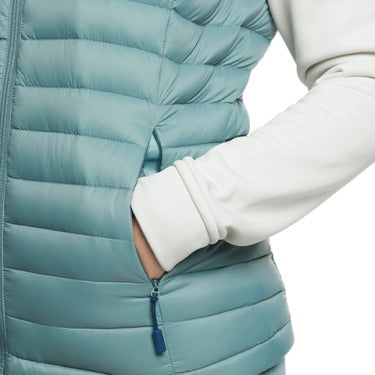 Cuenta con un ceñidor elástico en el bajo con cierre de tanca para un ajuste perfecto. La cremallera longitudinal facilita el uso, y el diseño entallado acentúa su apariencia elegante. Incluye bolsillos ventrales con cremallera para un almacenamiento seguro. Ofrece cierta capacidad térmica y cuenta con un tratamiento repelente al agua para mantenerte seco en lluvias ligeras. Ideal para usar en capas o como pieza independiente para añadir calor sin volumen adicional.
