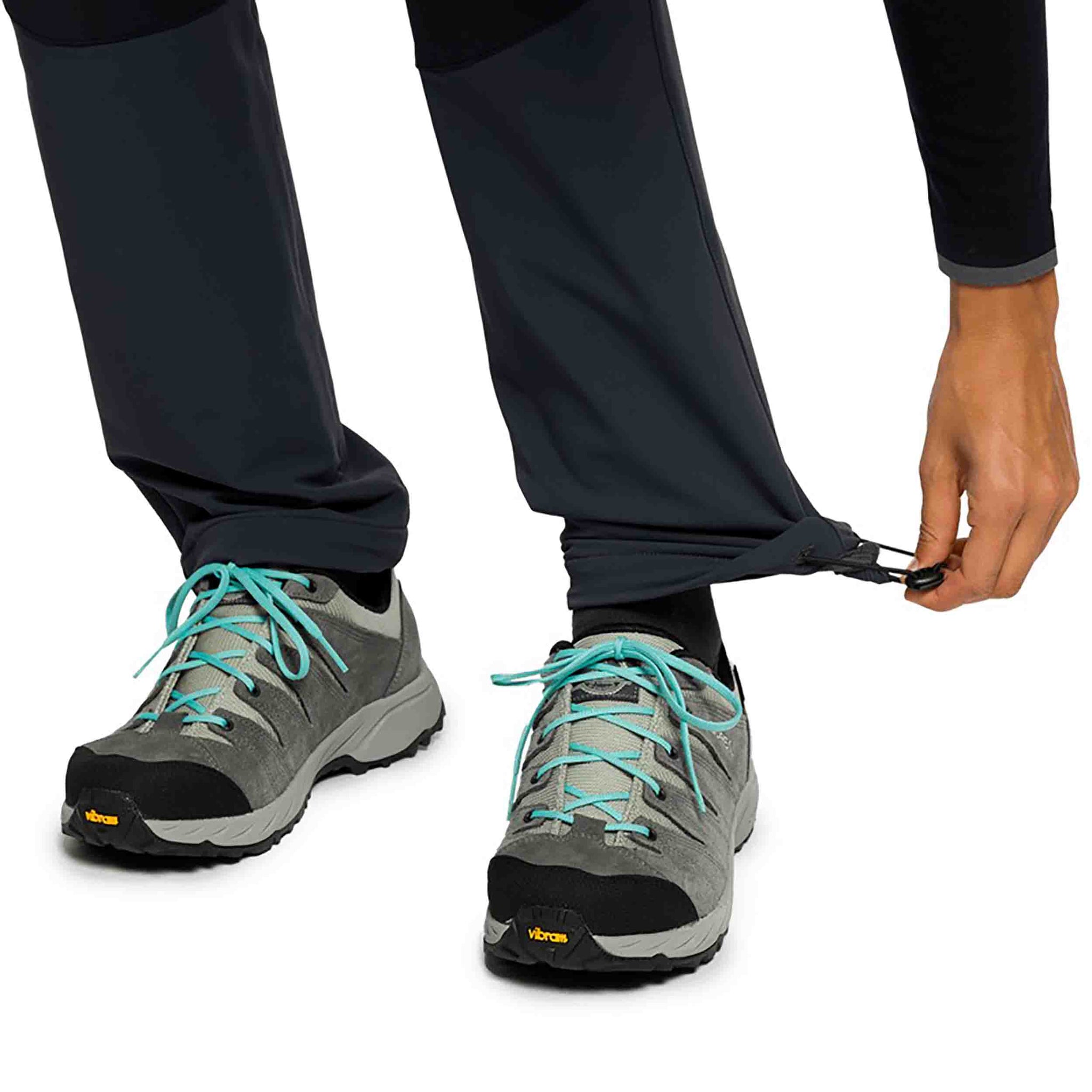 El diseño ergonómico incluye rodillas preformadas, patrón en V y un triángulo en la entrepierna, que mejoran la movilidad y el ajuste durante actividades dinámicas. La cintura con goma interior ajustable, cinturón, botón de gancho y trabillas para cinturón aseguran un ajuste seguro y personalizado.