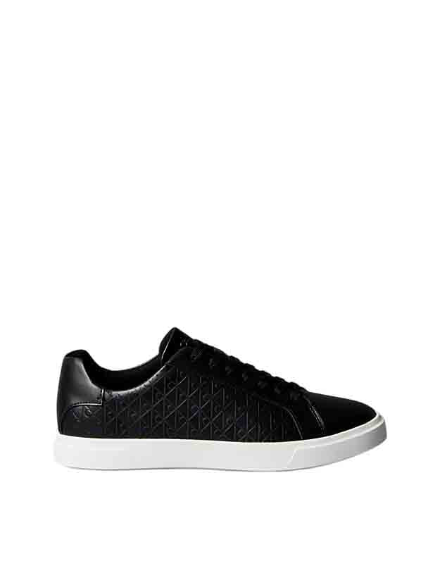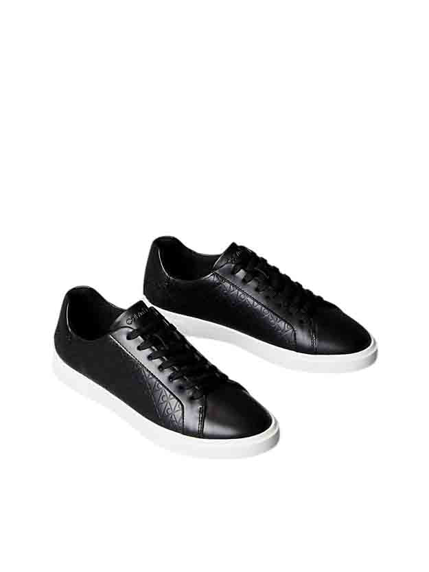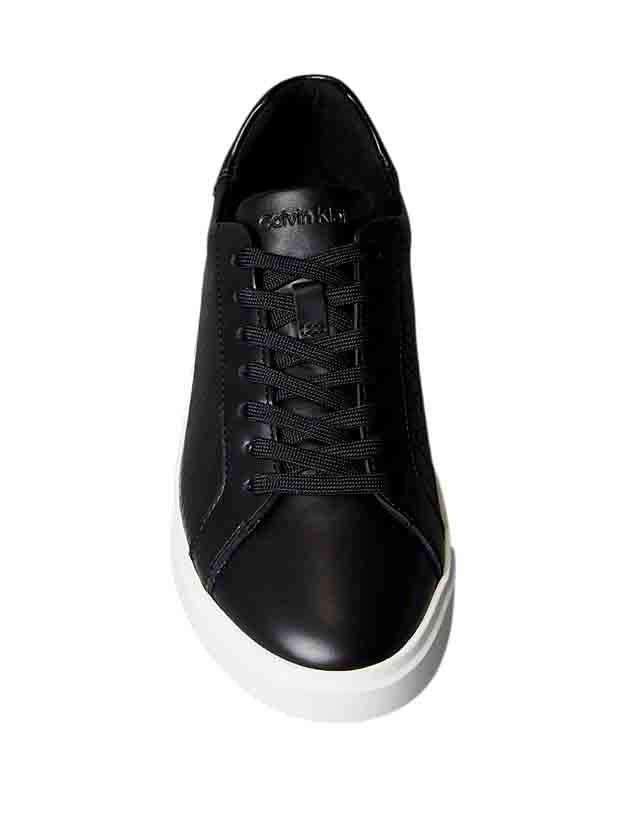 Zapatillas Calvin Klein Low Pro Cups Lace Up LTH AOP (ref. HW0HW02817‑BEH) en color negro, perfectas para ti que buscas un calzado femenino elegante con materiales de calidad. La parte superior en piel lisa aporta una estética refinada y durabilidad, mientras el forro interior de malla de poliéster garantiza transpirabilidad y confort durante todo el día.