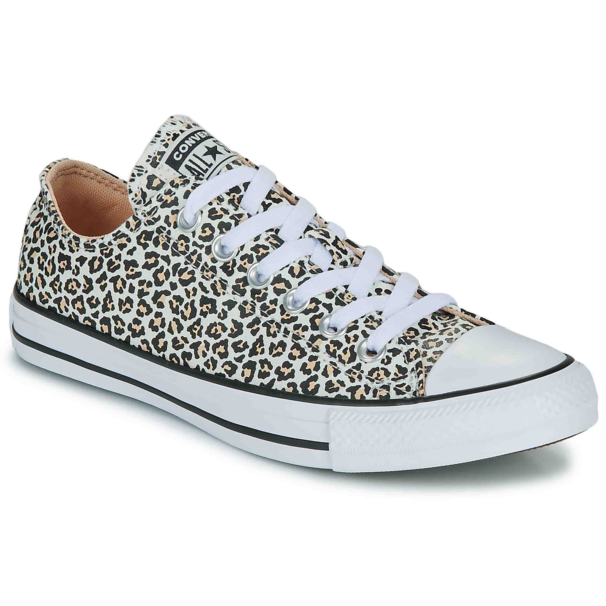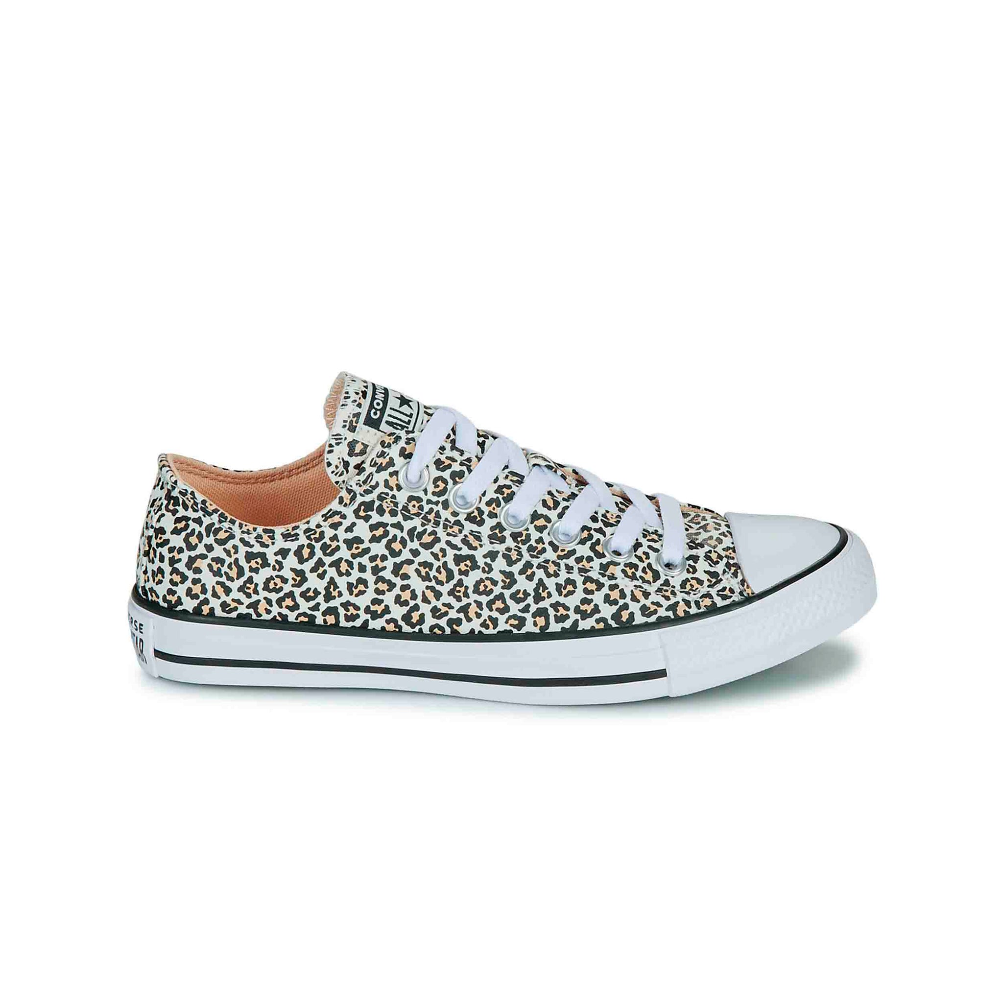 El diseño se enriquece con detalles exclusivos, como las punteras de goma y las características rayas laterales, que siguen siendo un sello distintivo de la línea Chuck Taylor. Pero lo que realmente destaca son los llamativos toques de leopardo que aportan una nueva dimensión al diseño, dándole un aire fresco y renovado a tu fondo de armario. Estos detalles animales aportan un toque audaz y moderno que se combina perfectamente con el estilo clásico de Converse.