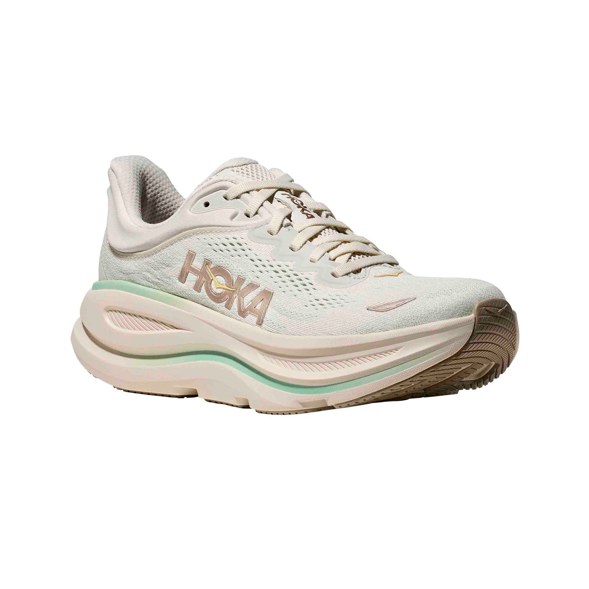 Zapatilla Hoka Bondi 9 para mujer (ref. 1162012-TLS) — diseñada para quienes buscan la máxima amortiguación sin renunciar a una transición suave en cada zancada. Su mediasuela monta la nueva espuma super critically foamed EVA, que eleva el perfil y añade dos milímetros extra de altura para un rodar más envolvente y protector en tiradas largas.