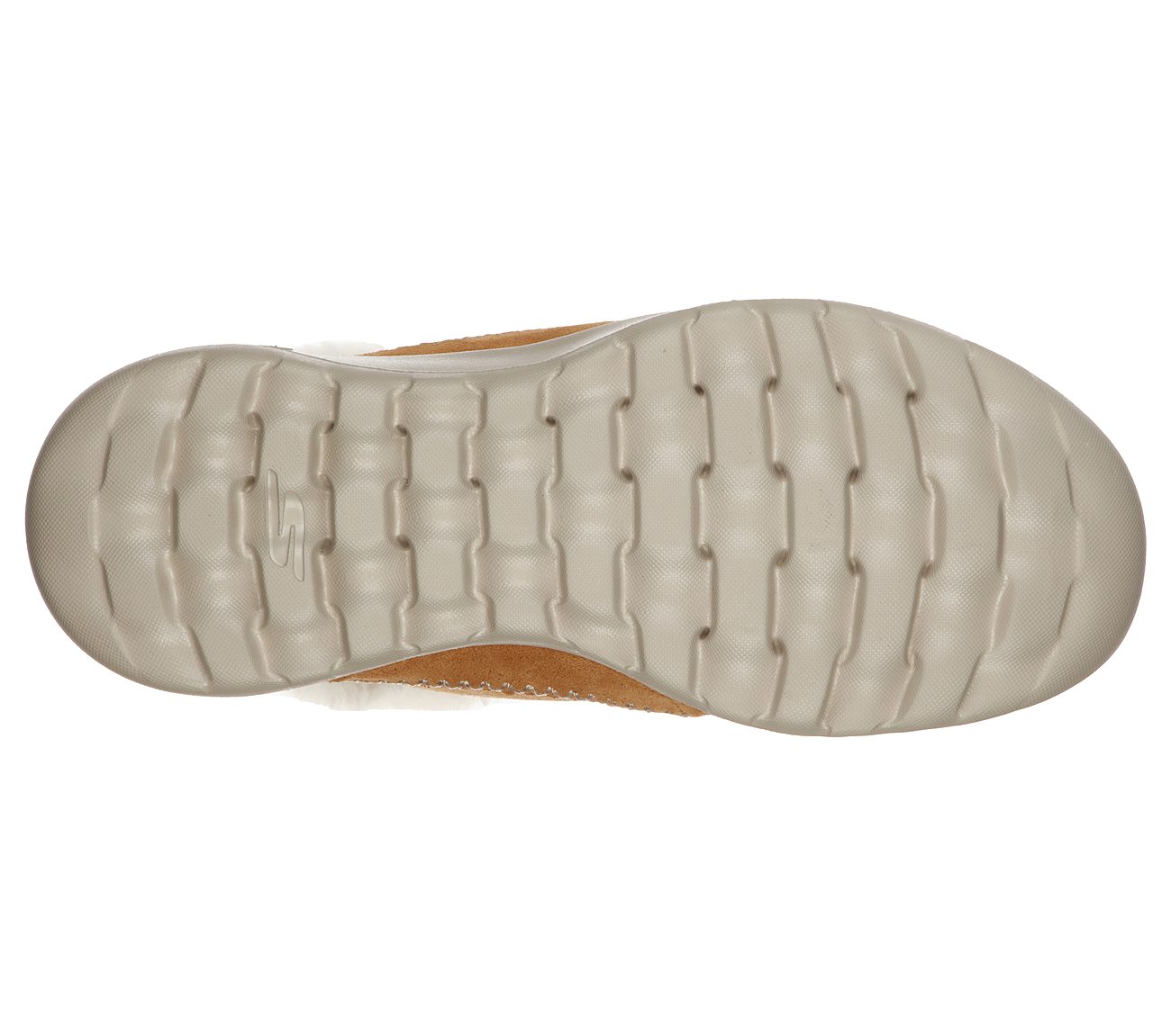 Zapato estilo botín para mujer de Skechers, confección en lona resistente con pelo sintético, mediasuela de goma que aporta una gran comodidad combinada con su plantilla Memory Foam. Color Marrón.