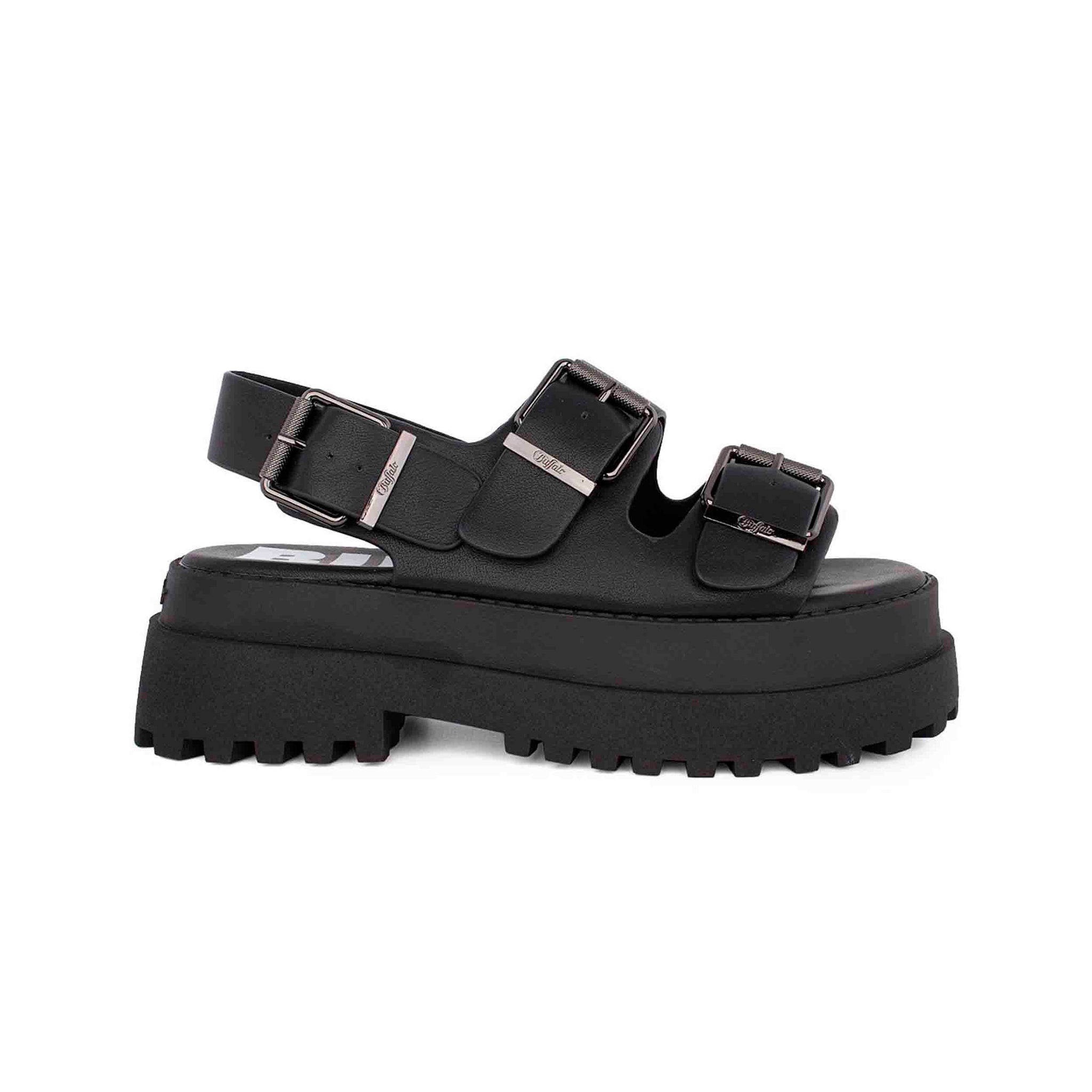 Las sandalias de plataforma Buffalo Pluto Ari en color negro son la elección perfecta si buscas un calzado que combine estilo urbano, comodidad y un diseño vanguardista para tus looks veraniegos.​