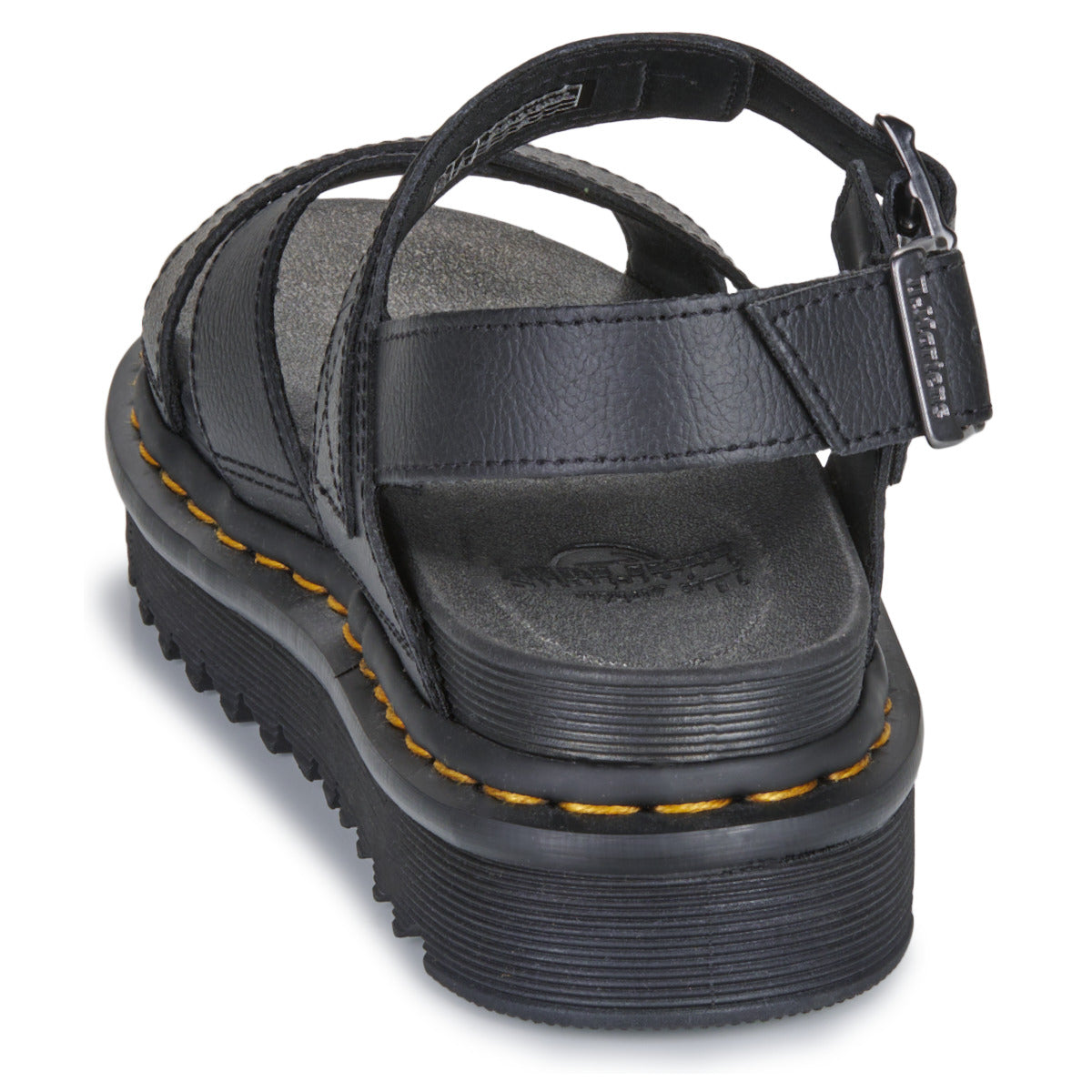 Una característica distintiva de estas sandalias es su correa ajustable con hebilla, que permite un ajuste seguro y personalizado alrededor del tobillo. Este diseño no solo mejora la sujeción, sino que también añade un elemento de estilo adicional al conjunto. La construcción con empalmillado Goodyear, que sella y cose la parte superior y la suela, garantiza una mayor durabilidad y resistencia al desgaste, características emblemáticas de Dr. Martens.