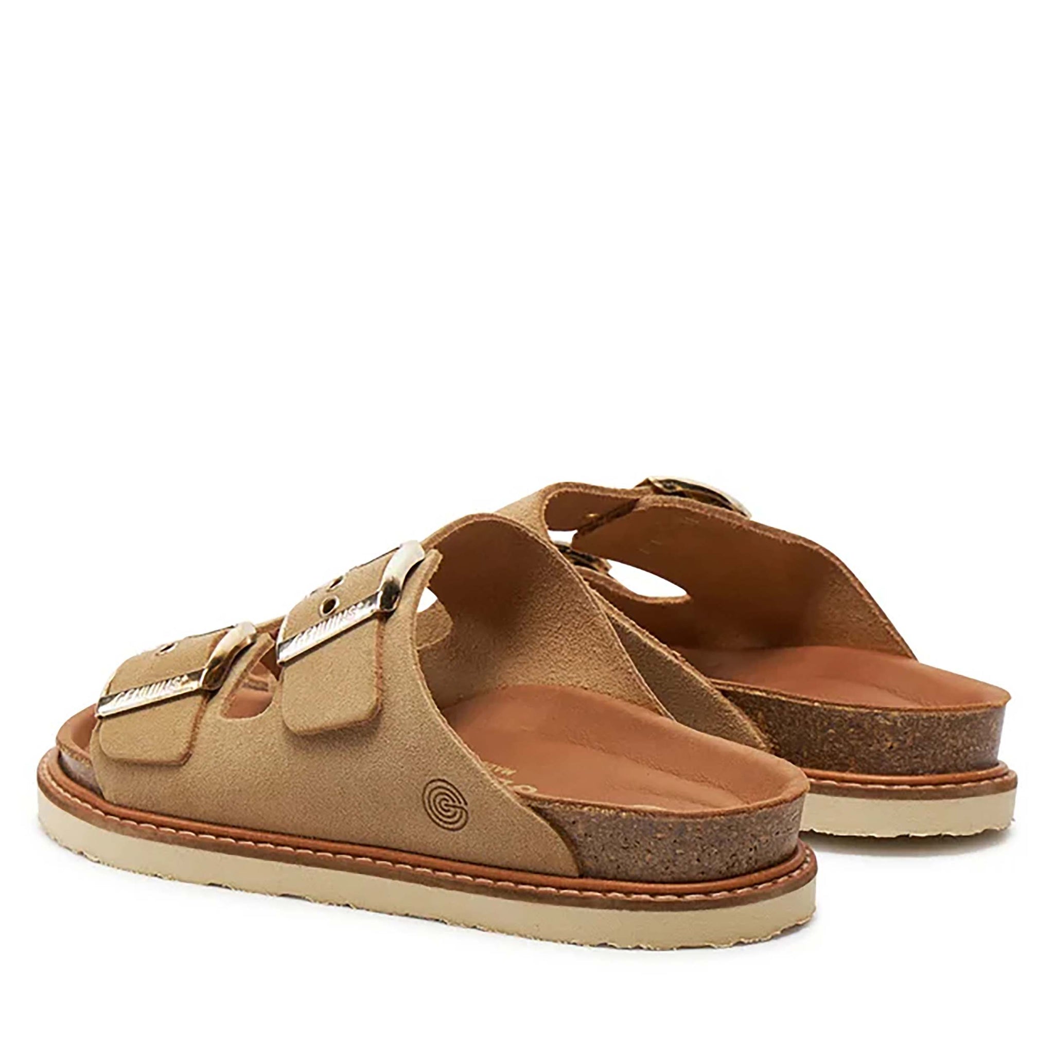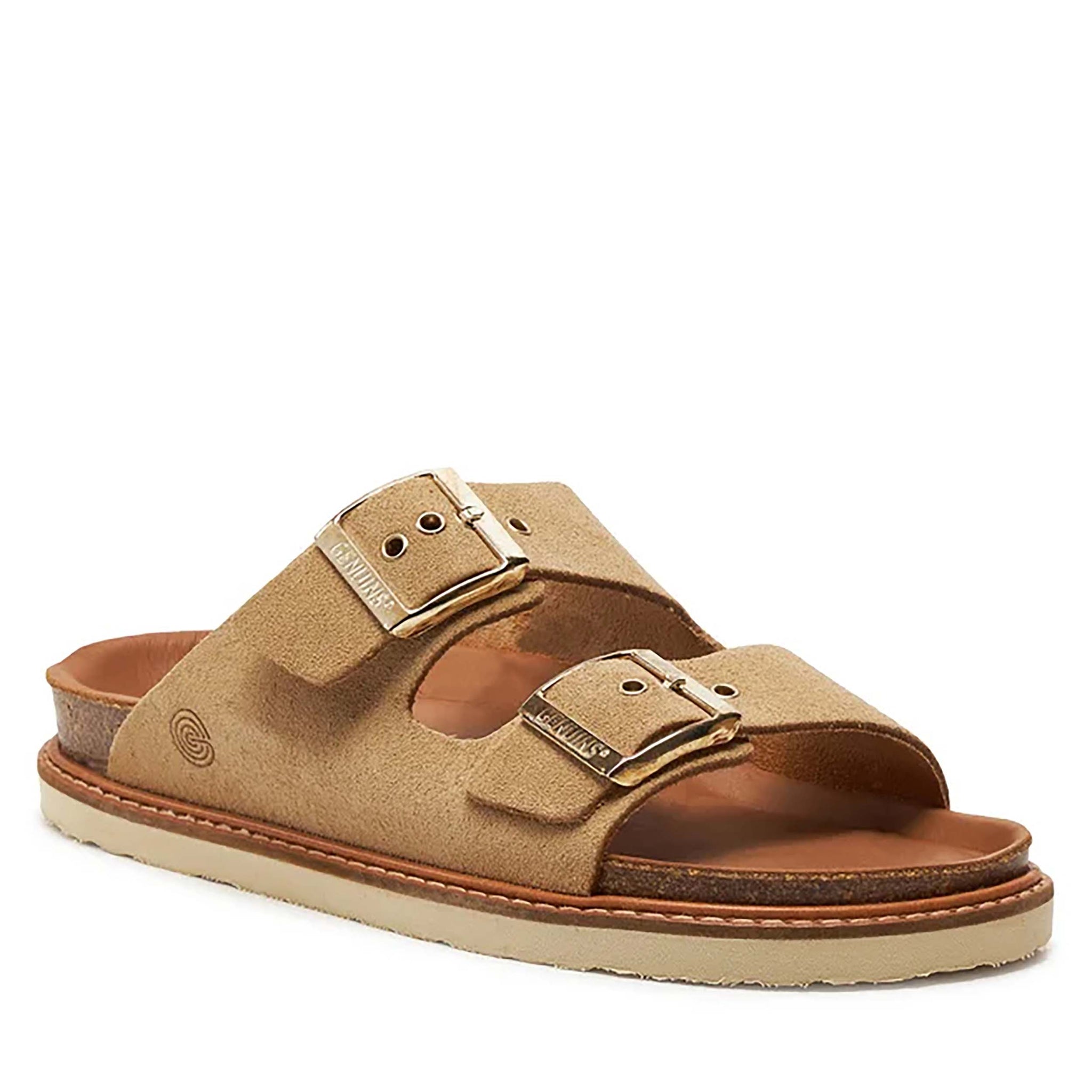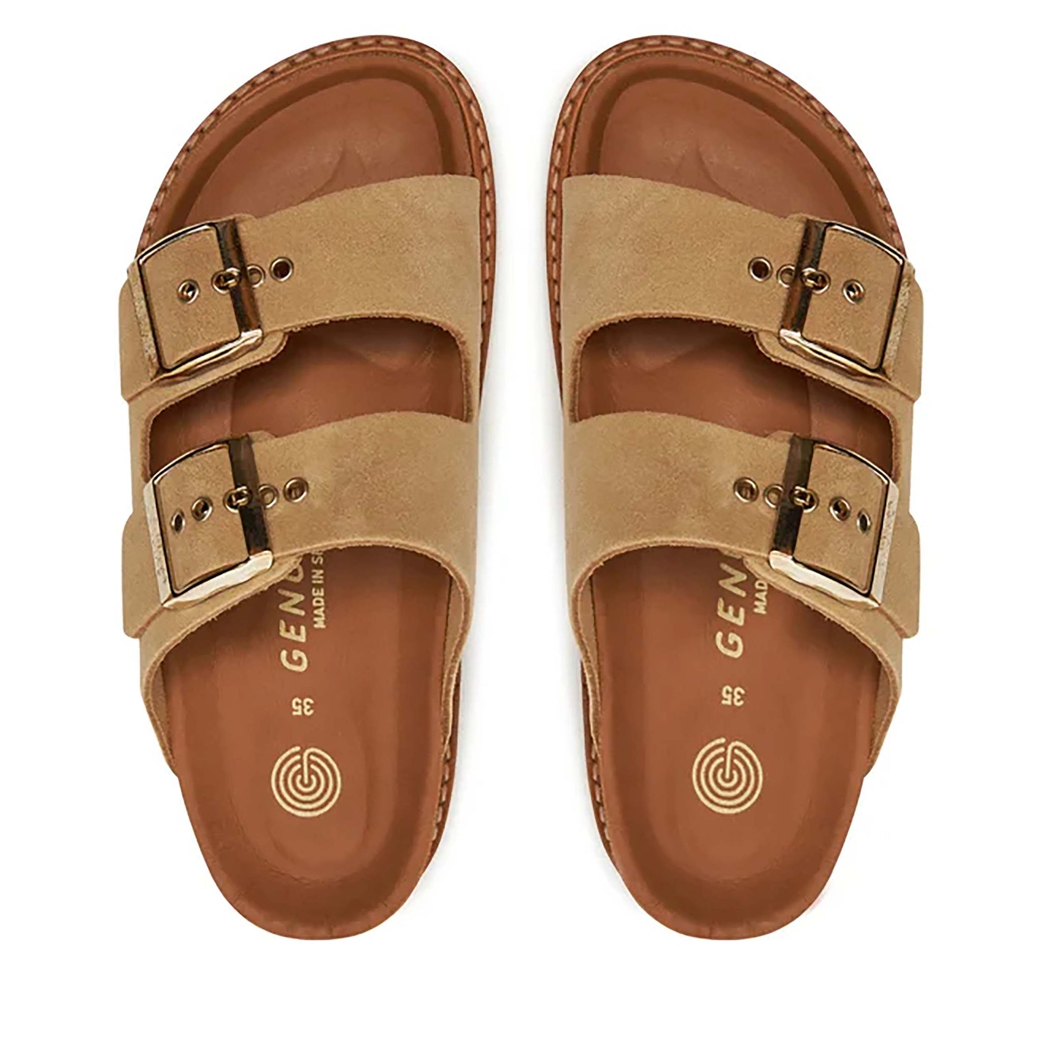 Sandalia de piel engrasada color marrón con planta anatómica Genuins. Se ajustan genial al pie gracias a las hebillas que podrás regular dependiendo de la anchura.