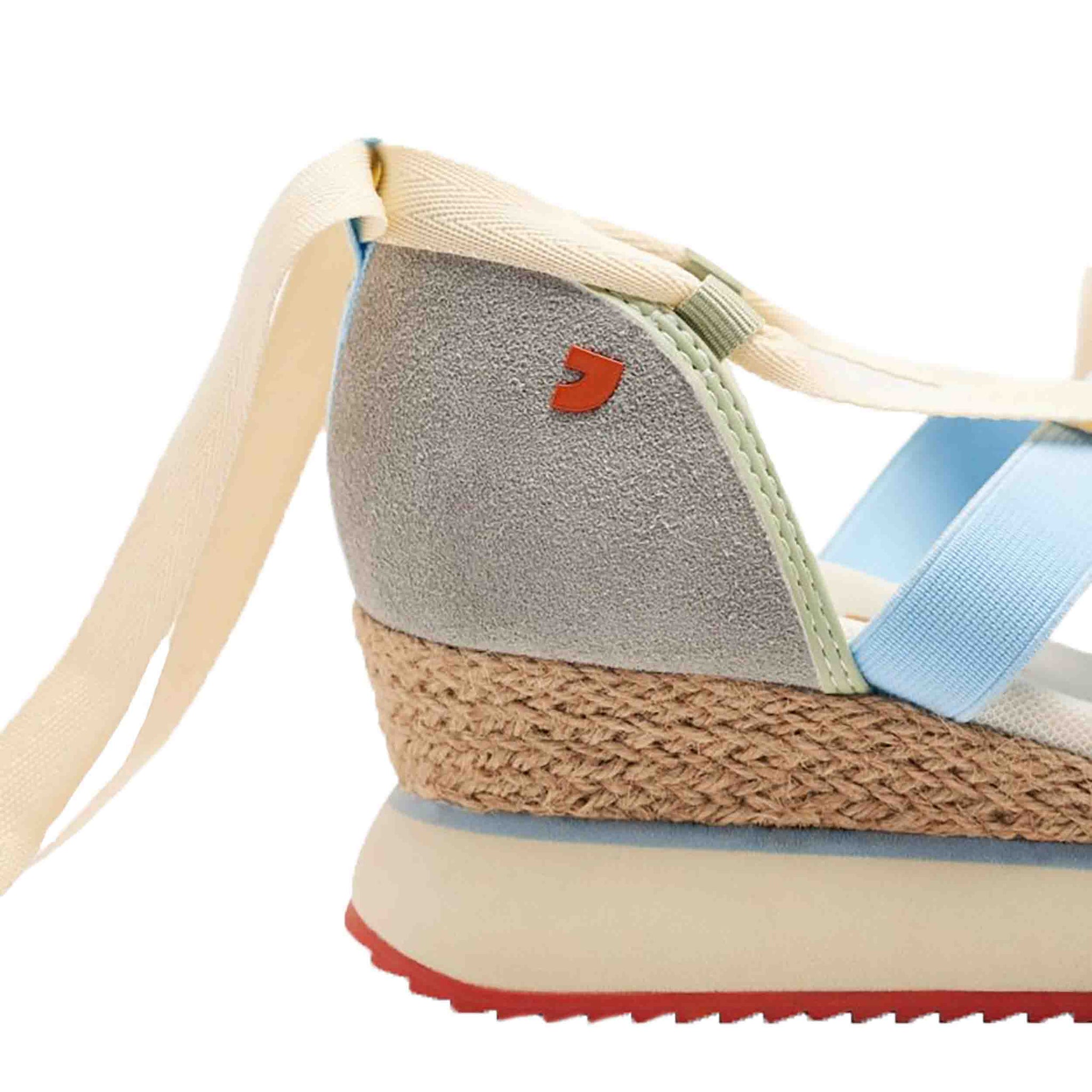 La cuña está elaborada en rafia, con una altura de 5,5 cm, que estiliza tu figura sin comprometer la comodidad. La suela de goma antideslizante garantiza una pisada firme y segura en distintas superficies.