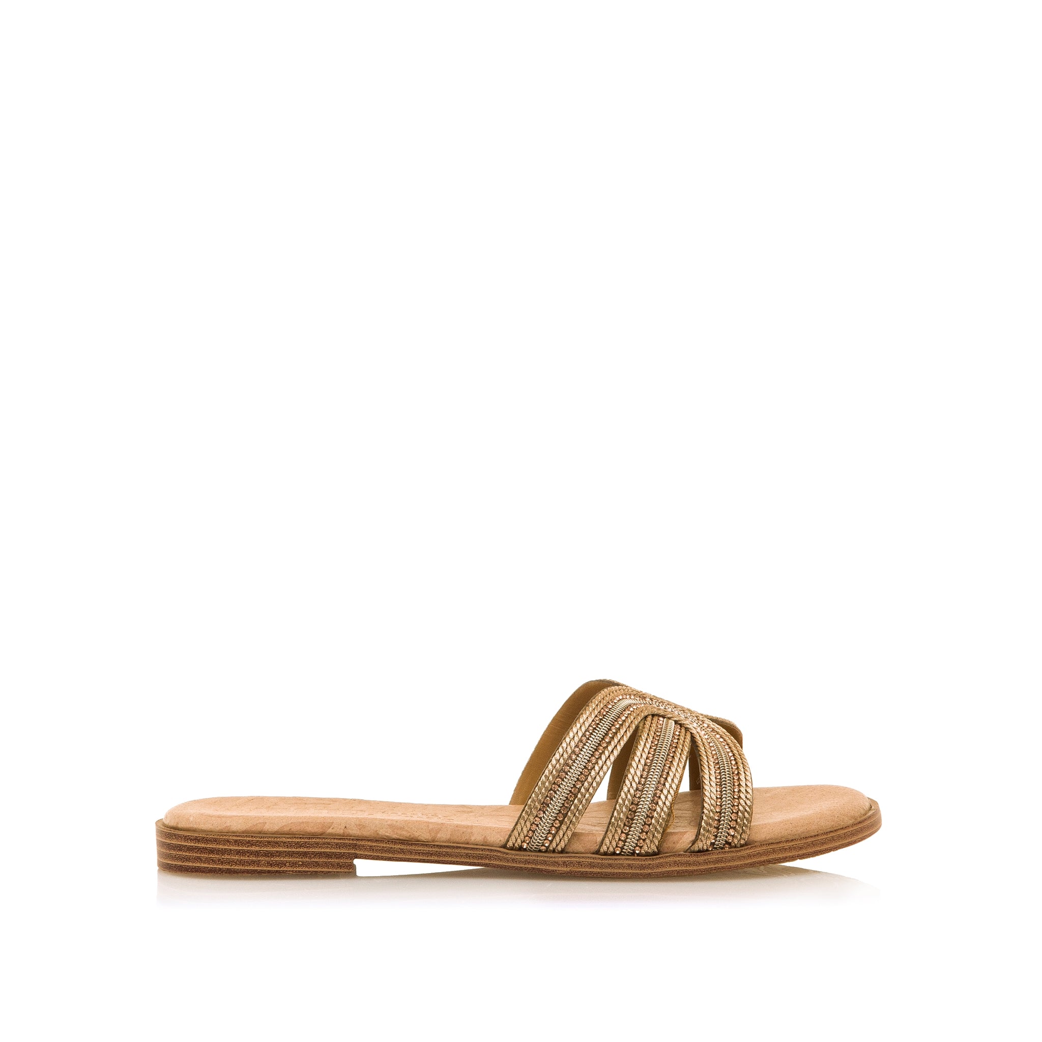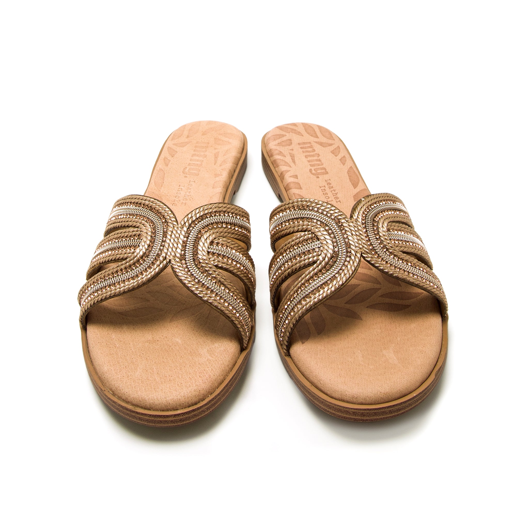 Fabricada con una combinación de materiales sintéticos y piel, la "María" ofrece una estructura robusta y duradera sin sacrificar la suavidad al contacto con la piel. Su color champagne (Dorado), con matices dorados, añade un toque de sofisticación que se adapta fácilmente a diferentes tonos y estilos de vestimenta.