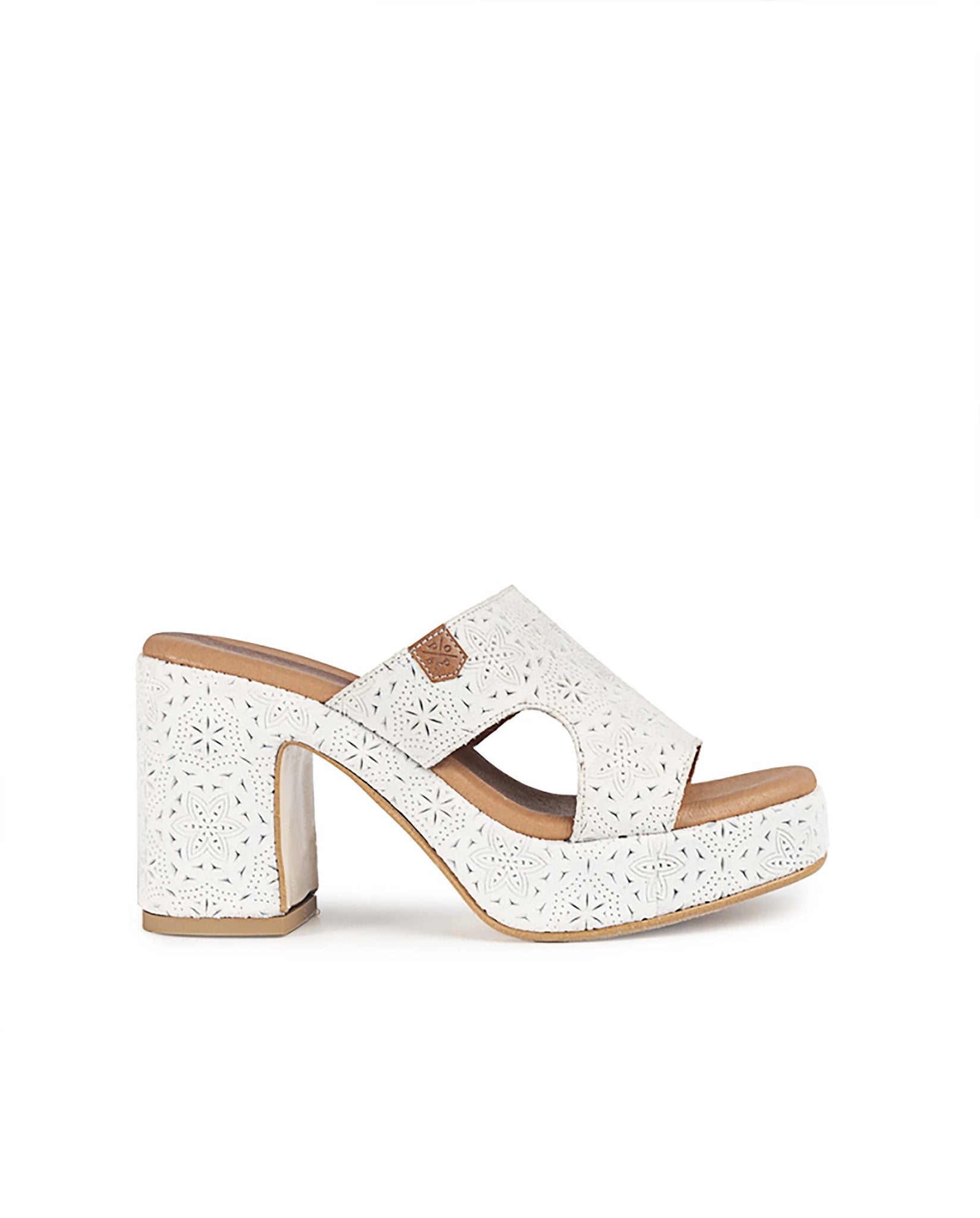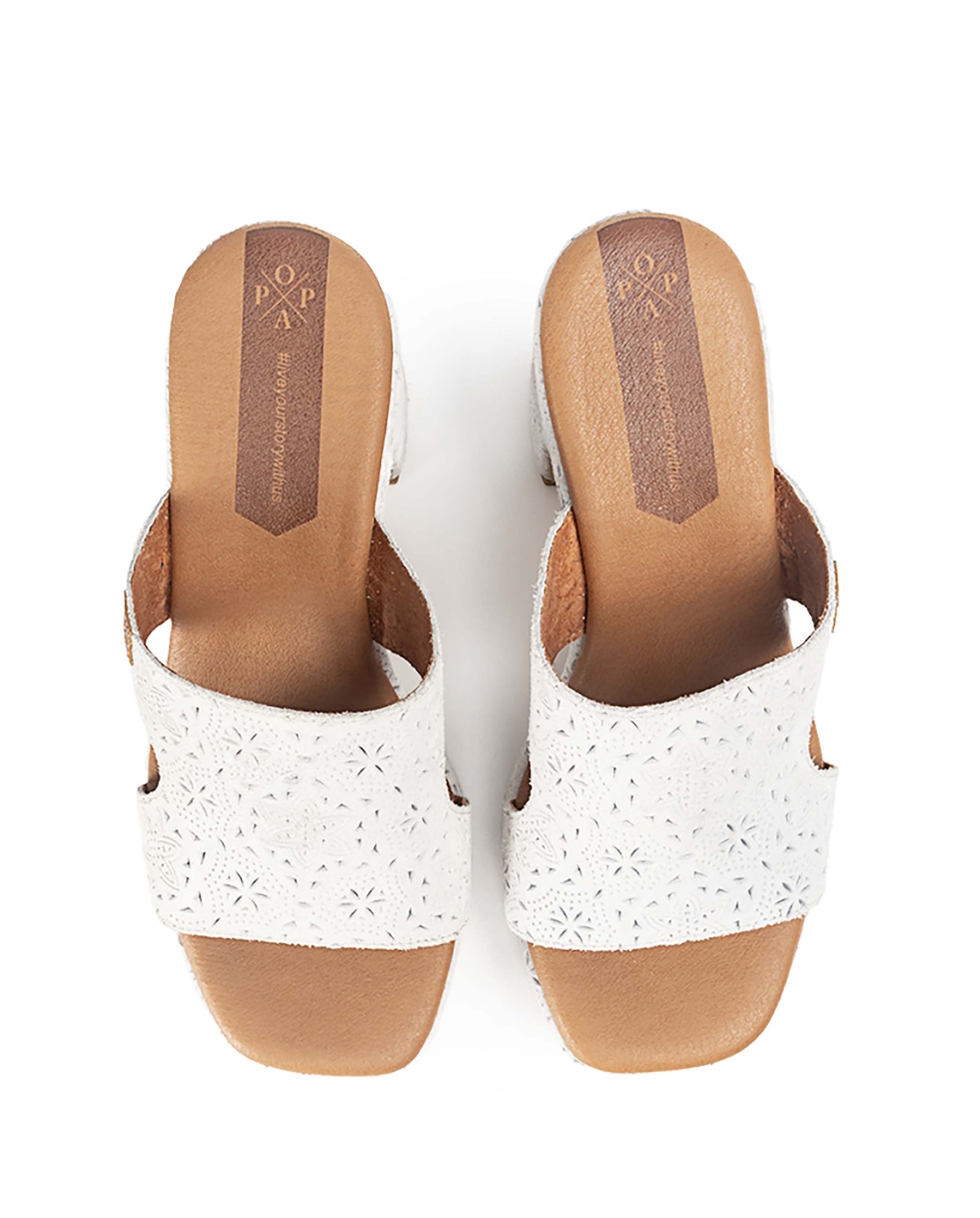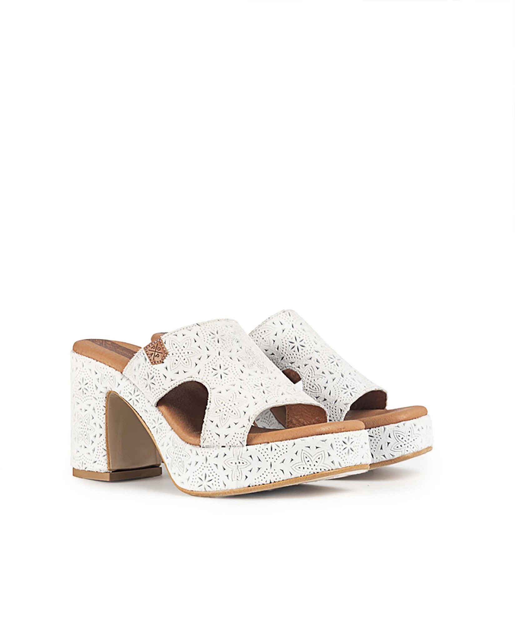 Sandalia para mujer de la marca POPA modelo PADAWAN GRABADO. En color blanco, fabricado en piel, altura del tacón de 8cm y plantilla acolchada.