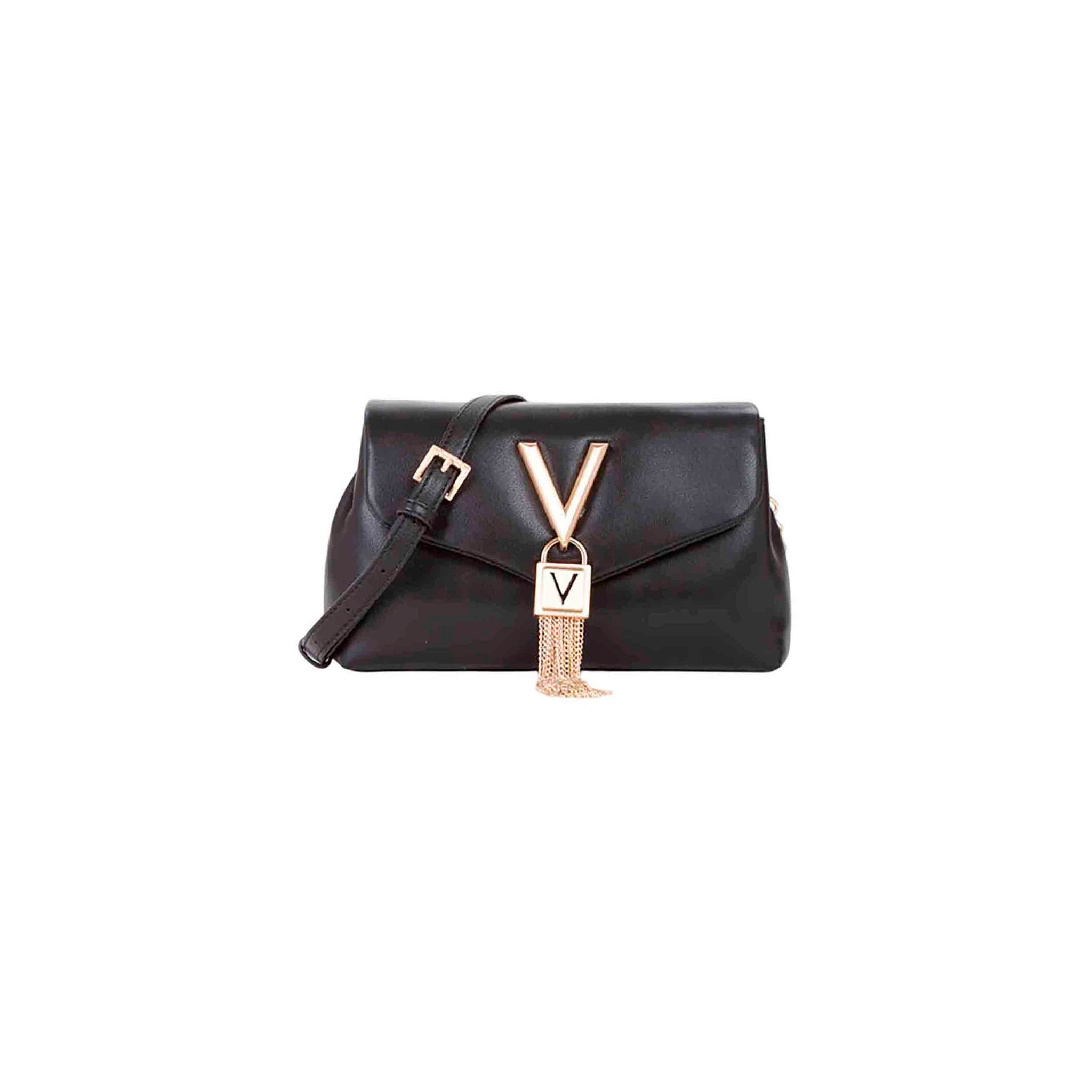 El diseño elegante se completa con asas resistentes y correa ajustable, permitiendo llevarlo al hombro o cruzado según tus necesidades. Además, los detalles metálicos y el logo Valentino aportan un toque distintivo y refinado, destacando el carácter exclusivo de la marca.