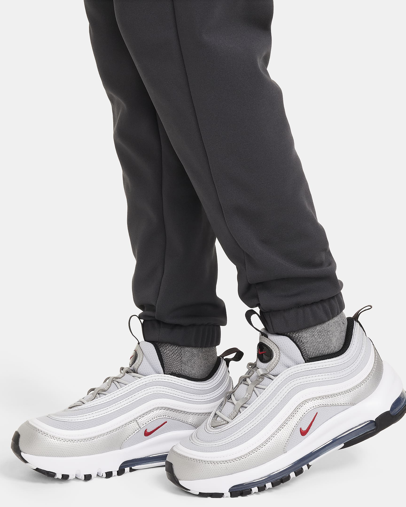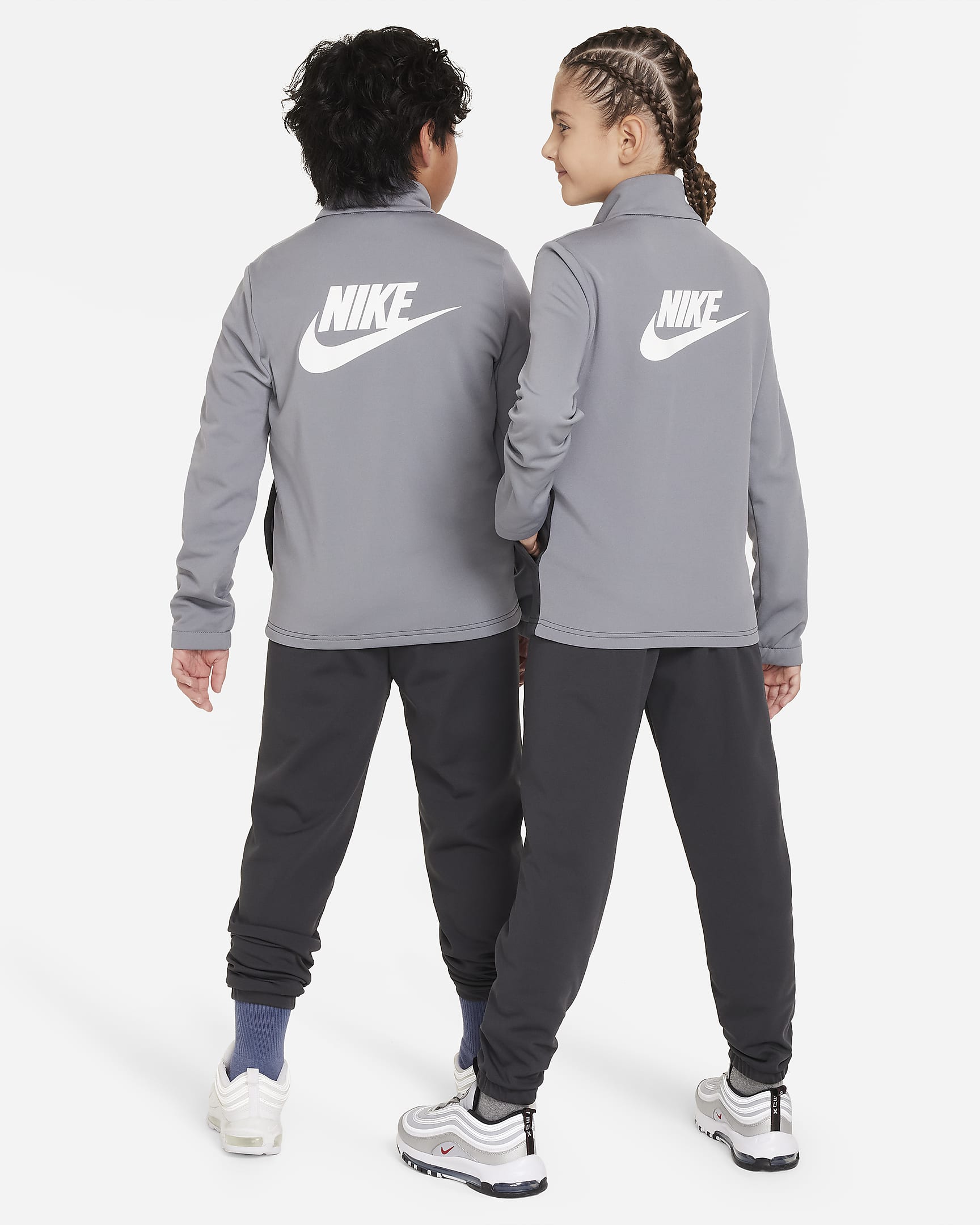 Los puños elásticos tanto en los pantalones como en la chaqueta garantizan un ajuste cómodo y ceñido, evitando que la prenda se deslice mientras se juega o corre. En la parte posterior de la chaqueta, el logotipo Futura de gran tamaño le da un toque distintivo y de estilo que rinde homenaje al legado de Nike. La presilla para colgar con diseño a cuadros añade un detalle adicional que resalta la atención al diseño.