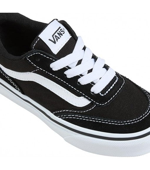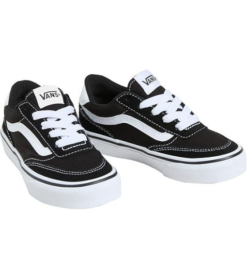 La parte superior combina lona resistente y gamuza suede negra, asegurando durabilidad y estética limpia. La icónica franja lateral Sidestripe en blanco aporta contraste visual y refuerza la identidad Vans reconocida en moda urbana. El cuello acolchado y cierre de cordones proporcionan una sujeción segura sin perder comodidad, especialmente pensados para niños activos.