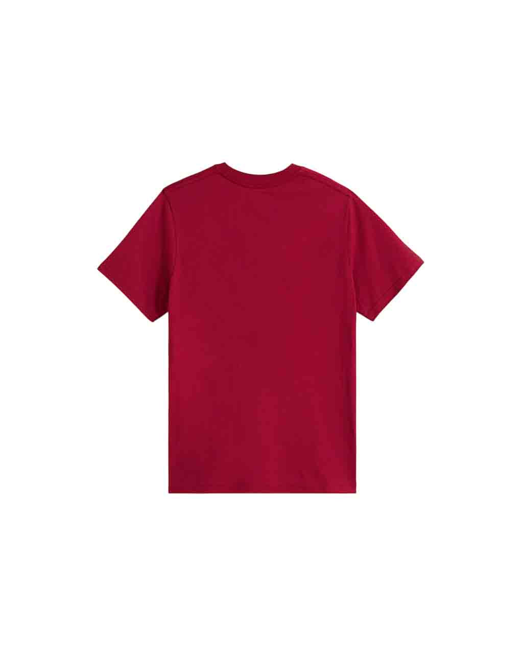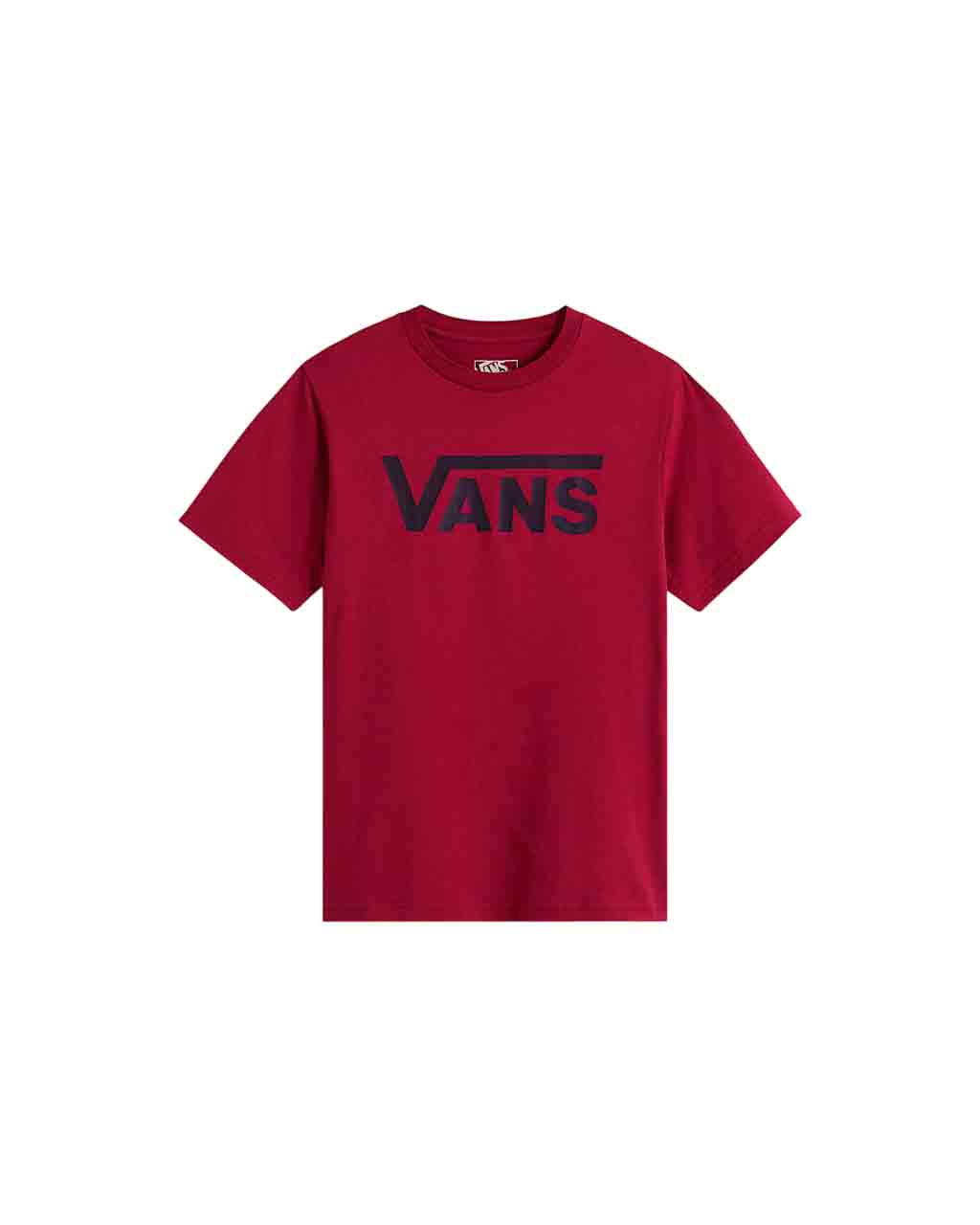 Camiseta Vans Classic VN000IVFBRD en tono burdeos, diseñada especialmente para niños, confeccionada en 100 % algodón hilado en anillas. Gracias a su tejido transpirable y suave, proporciona una sensación agradable durante todo el día, ideal para que tu hijo juegue, corra o disfrute con total comodidad.