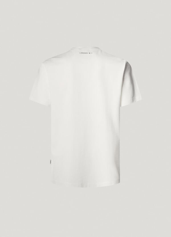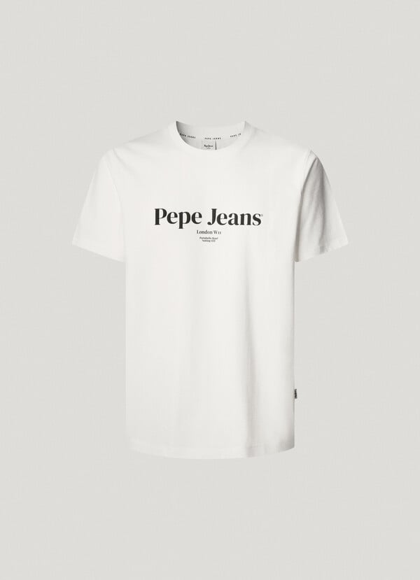El diseño presenta un cuello redondo clásico y mangas cortas, perfectas para un look casual y relajado. El logo de Pepe Jeans estampado en el pecho resalta con sutileza, mientras que el detalle canalé en el cuello y el acabado de doble pespunte en las mangas y el bajo le aportan un toque de durabilidad y estilo adicional.