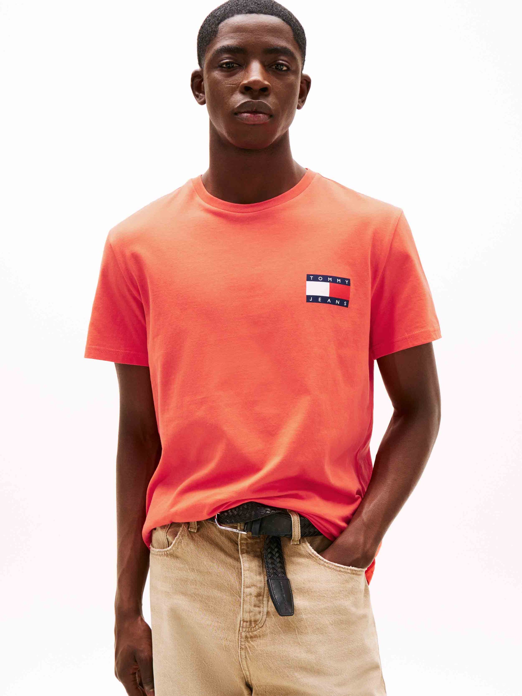 Tommy Jeans Slim Ess Flag Tee Camiseta Hombre naranja