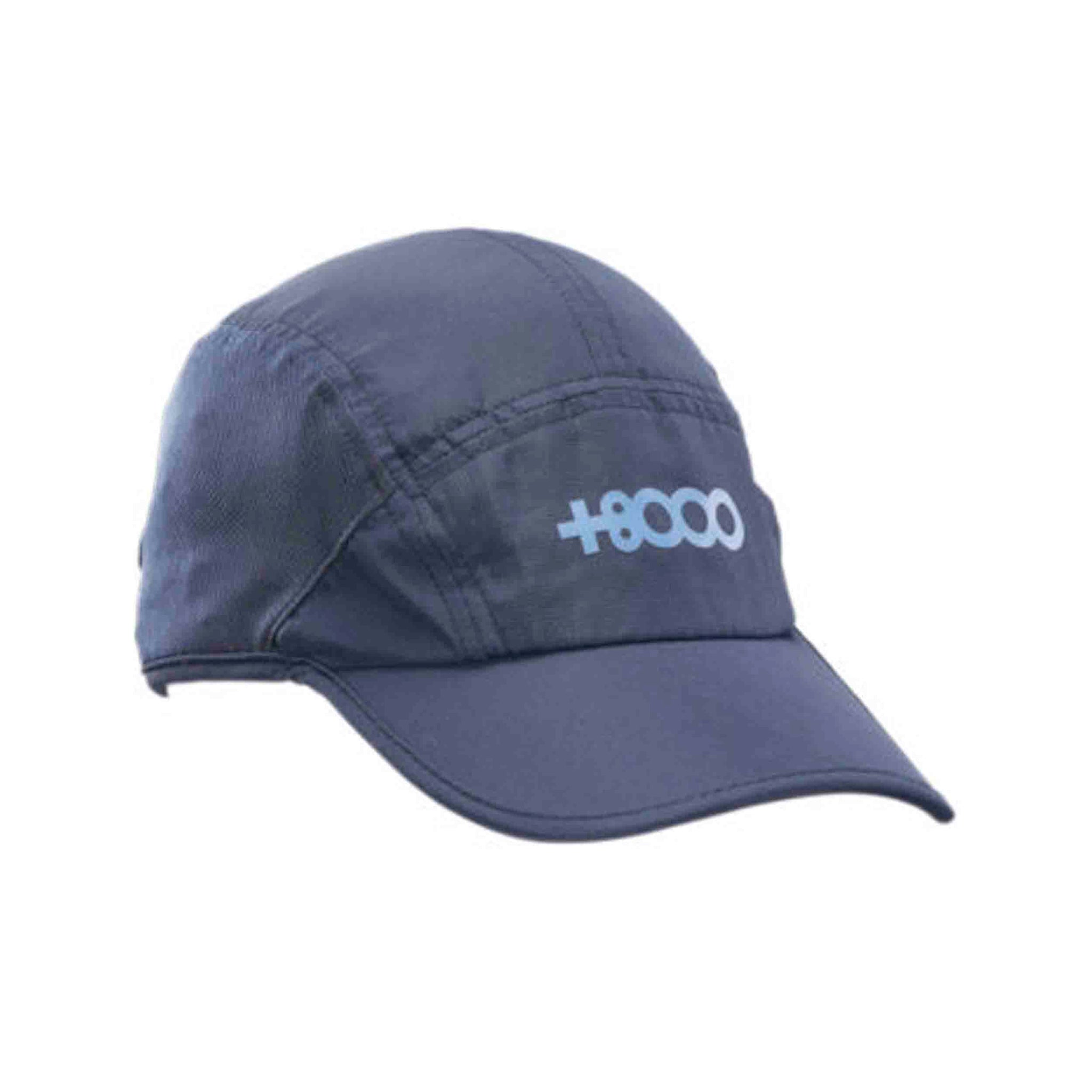 El diseño de la gorra incluye una visera que proporciona sombra y protección, y su ajuste trasero con velcro garantiza un calce cómodo y seguro. Además, el logotipo +8000 en la parte delantera y en el cierre trasero agrega un toque de estilo y distinción, destacando la calidad de la marca.