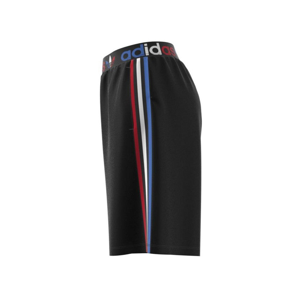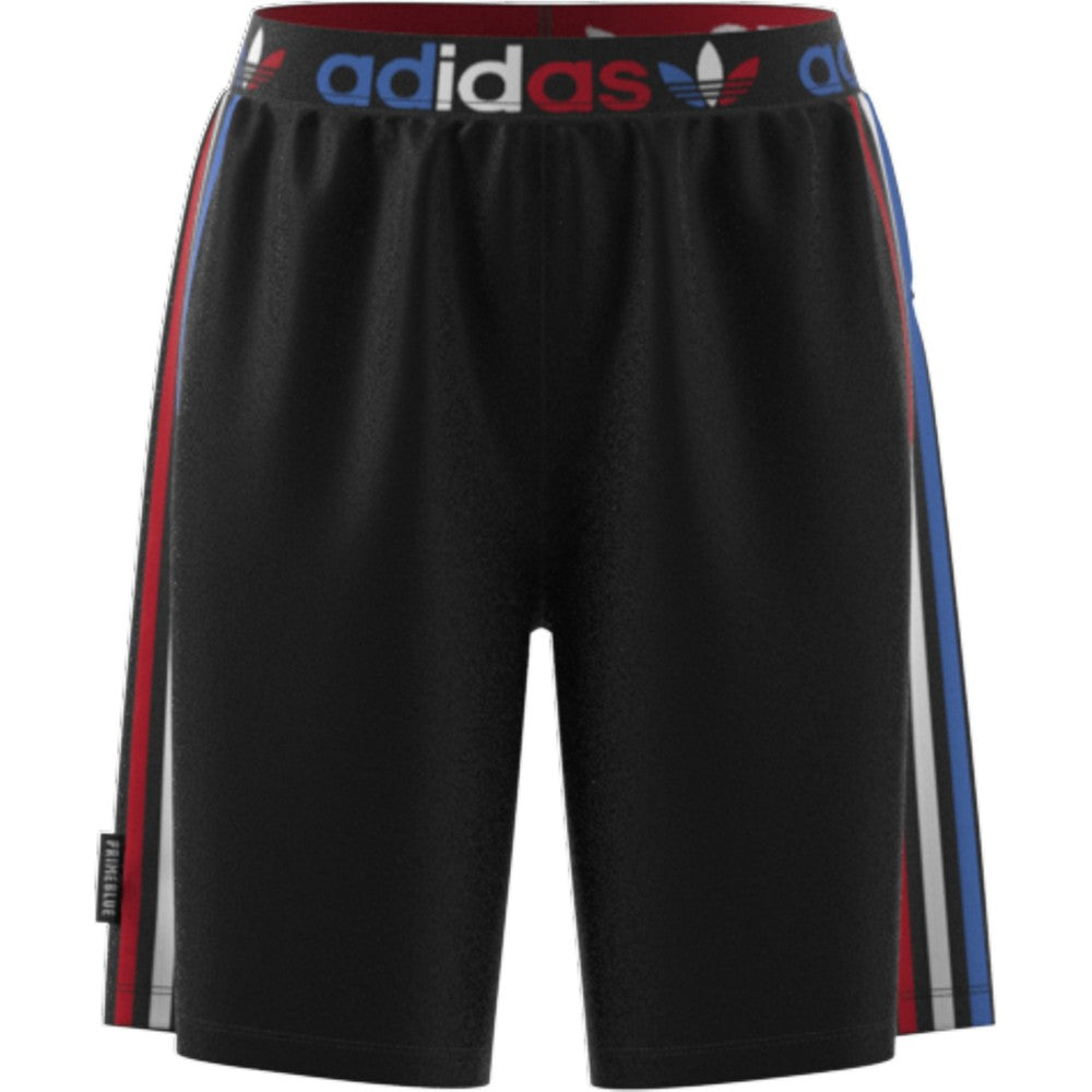 Pantalones cortos para mujer de Adidas, hechos en poliéster ofreciendo mayor transpiración y comodidad, banda elástica Originals tricolor, triple franja en los laterales. Color negro.