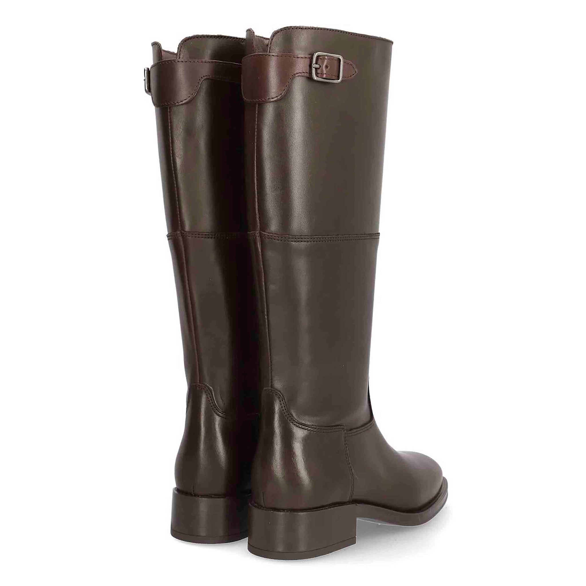 Fabricada en piel de alta calidad, ofrece una textura suave y duradera que mejora con el uso. Su caña alta moldea la pierna con una línea elegante, mientras que el tacón medio brinda una altura equilibrada que permite mantener la comodidad durante todo el día. La suela antideslizante asegura estabilidad en cada paso, incluso en superficies resbaladizas.