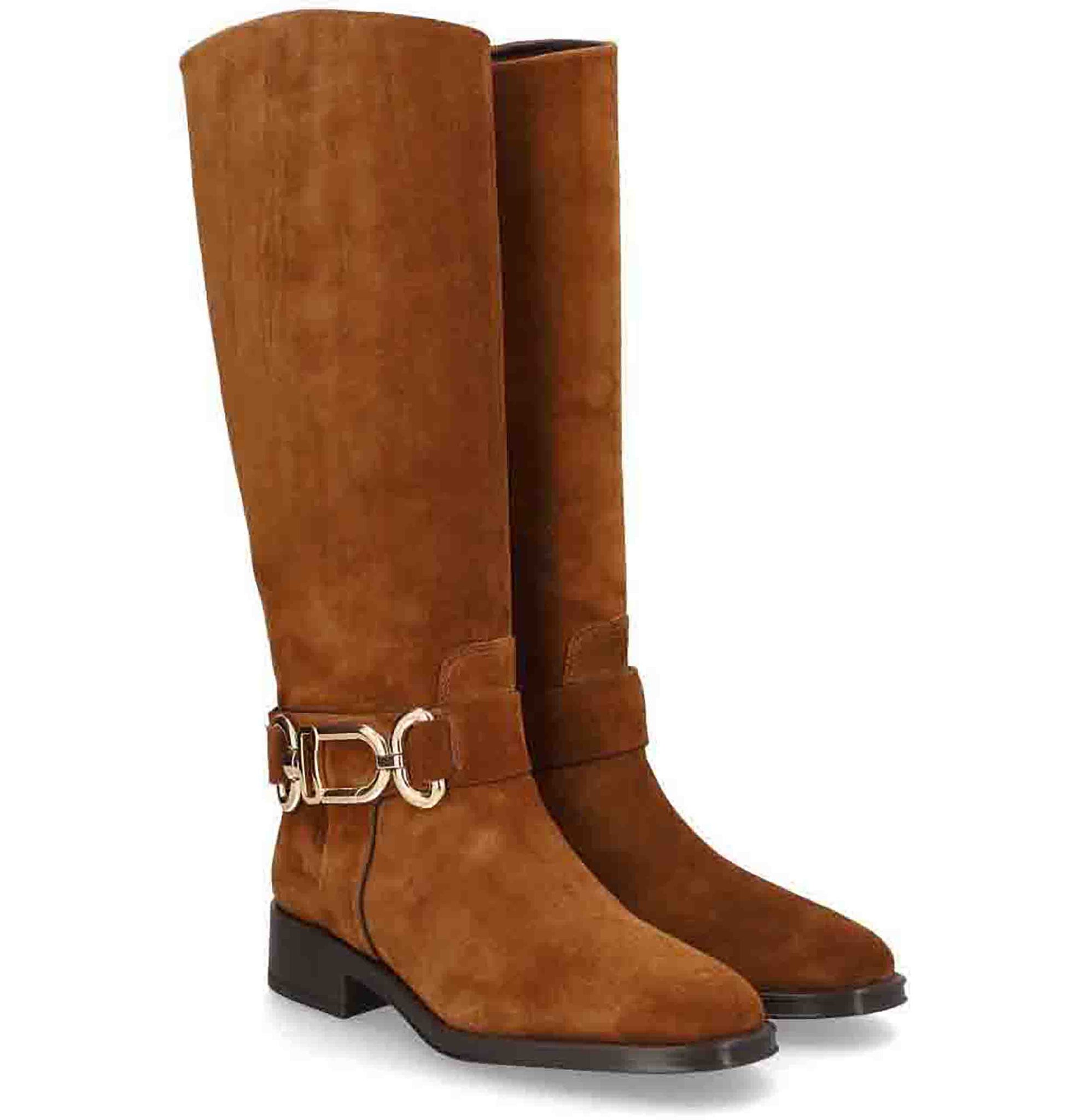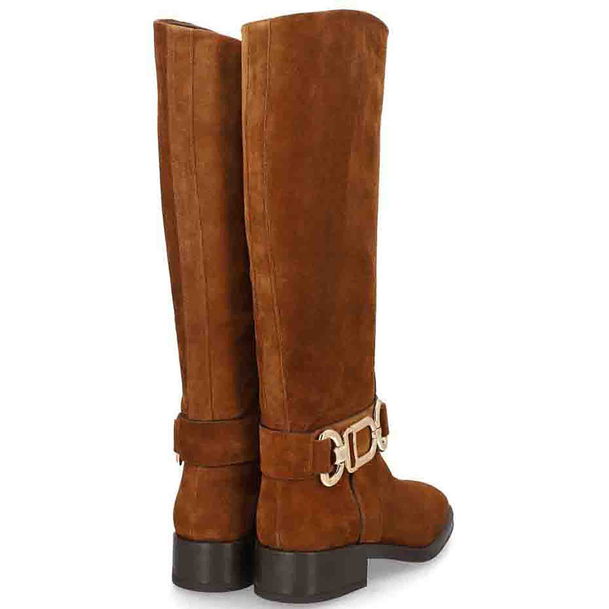 Bota para mujer ALPE COUTURE de piel ( baby silk) marrón, tacón de 3, 5 cm, suela antideslizante, puntera redonda, cierre con cremallera y caña alta. Composición exterior: piel. Composición interior: textil. Plantilla: textil.