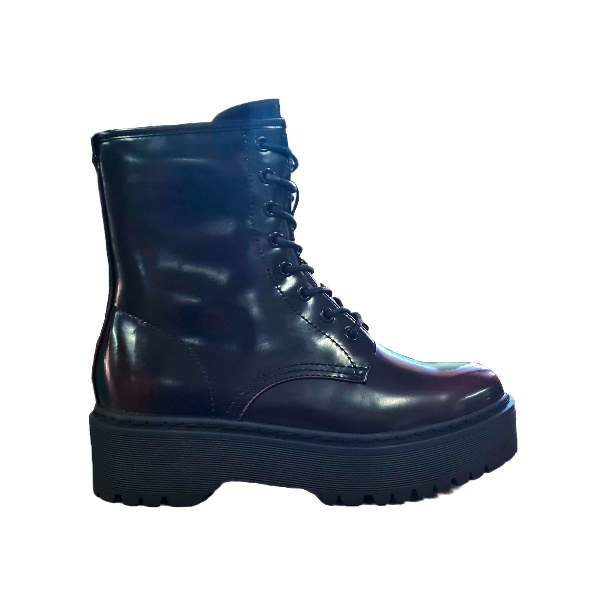 Bota para mujer de Bb up, hechas en piel sintética de caña media con ajuste de cordones y cremallera, mediasuela de goma con plataforma ofreciendo una mayor comodidad y firmeza en cada pasado, marca tu propio estilo vistiendo las botas Bb Up. Color burdeos.