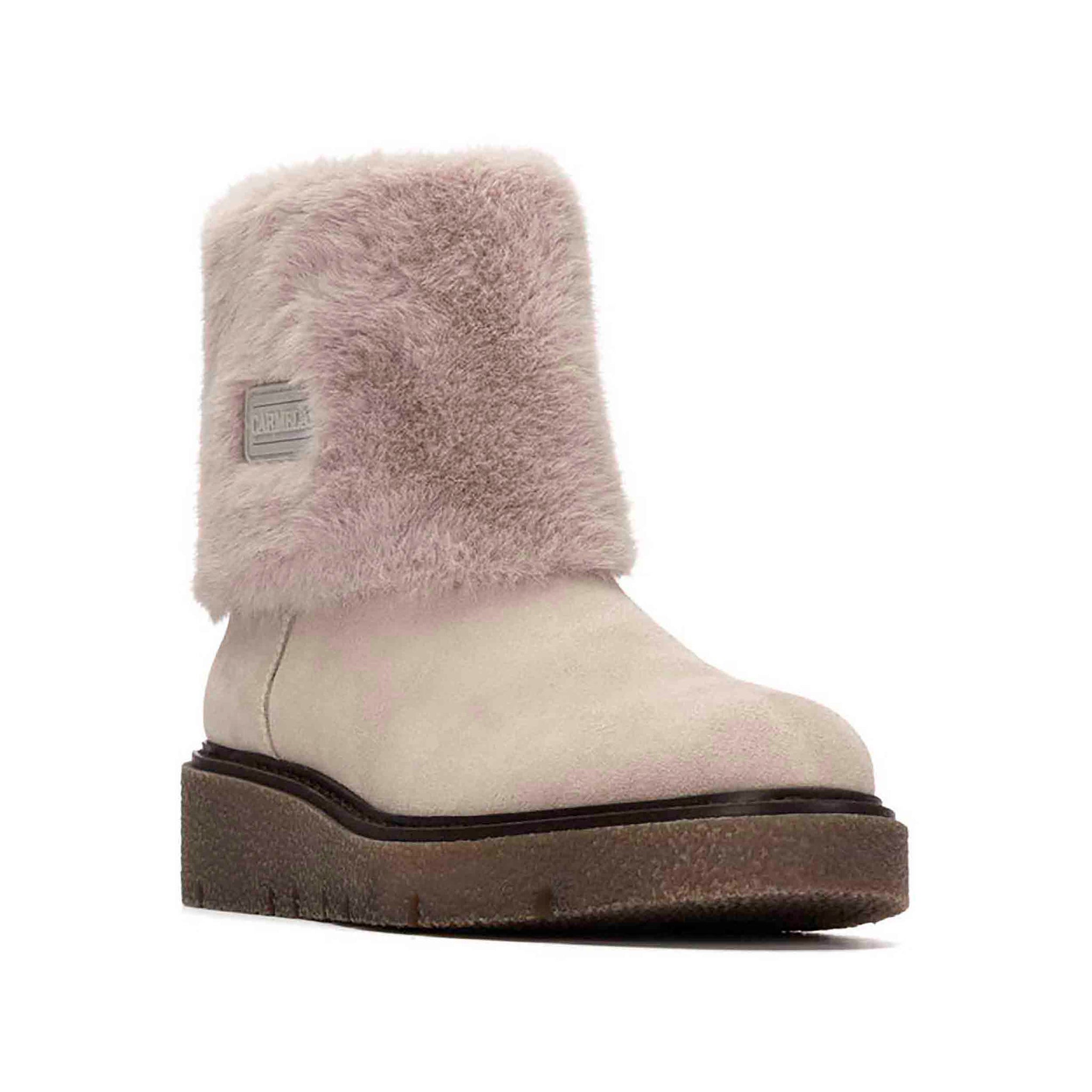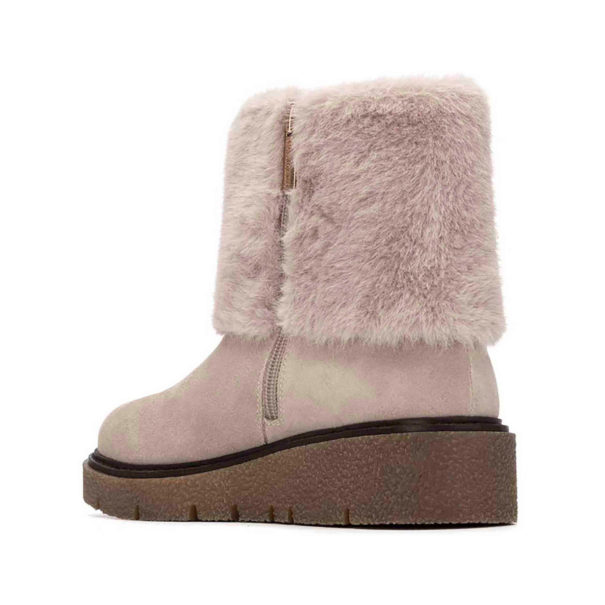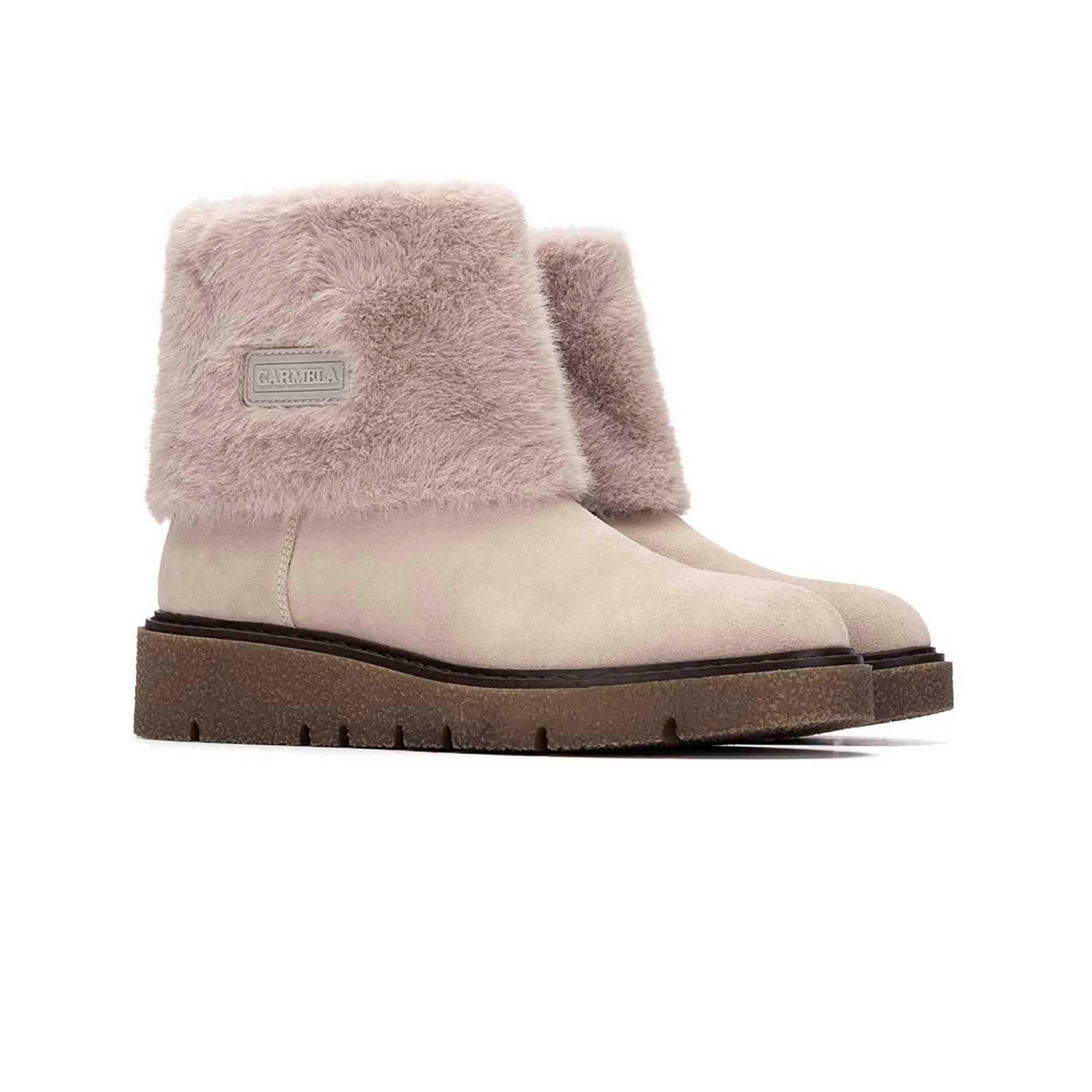 Está confeccionado en suave serraje, lo que aporta un tacto agradable y un acabado natural que combina fácilmente con distintos estilos. Incorpora un cierre mediante cremallera interna, que permite calzarlo con comodidad y mantiene la estética limpia del botín.