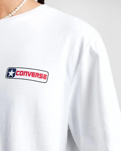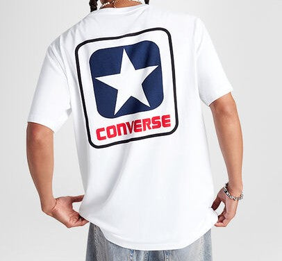 El diseño incluye el logo Box Star de Converse en el pecho, un detalle clásico y reconocible que aporta estilo y autenticidad a cualquier conjunto. Su estética minimalista y versátil permite combinarla con jeans, pantalones casuales o shorts, adaptándose a cualquier ocasión informal o de streetwear.