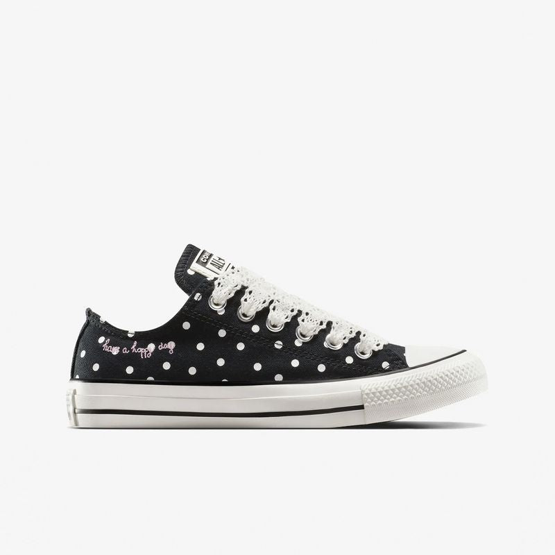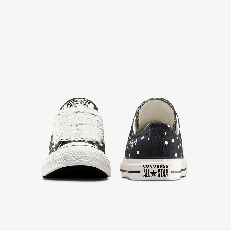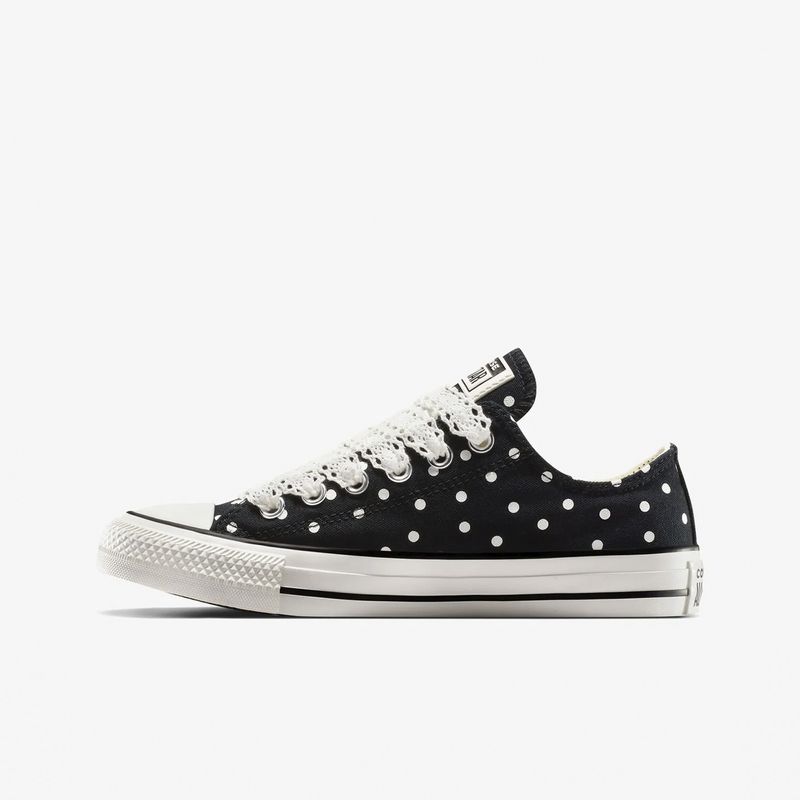 Las zapatillas Converse CTAS OX para mujer en color Black Vintage combinan el diseño clásico de las Chuck Taylor All Star con detalles modernos y sofisticados. Su parte superior de lona resistente en color negro ofrece durabilidad y versatilidad, adaptándose a diversos estilos y ocasiones. La plantilla con tecnología OrthoLite proporciona una amortiguación superior, garantizando comodidad durante todo el día. El estampado de lunares en tonos contrastantes añade un toque divertido y enérgico al diseño, reflejando una estética contemporánea. Los cordones trenzados y los detalles bordados aportan un toque artesanal, destacando la atención al detalle en su confección. La icónica etiqueta All Star en la lengüeta y la placa en el talón refuerzan la autenticidad de estas zapatillas, que mantienen la esencia de la marca Converse. La suela de goma con el patrón de espiga característico ofrece un excelente agarre, brindando seguridad en cada paso. Disponibles en tallas que van desde la 36 hasta la 41, estas zapatillas se adaptan a diferentes necesidades. Para su mantenimiento, se recomienda limpiarlas con un paño húmedo y evitar el uso de productos químicos agresivos. En resumen, las Converse CTAS OX en Black Vintage son una elección excelente para quienes buscan un calzado que combine diseño, comodidad y resistencia en su uso diario.