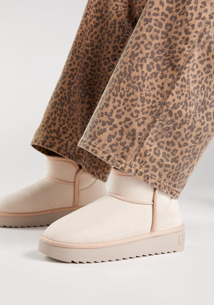 Diseño con corte asimétrico en tono blanco roto y forro interior sintético para una calidez superior.