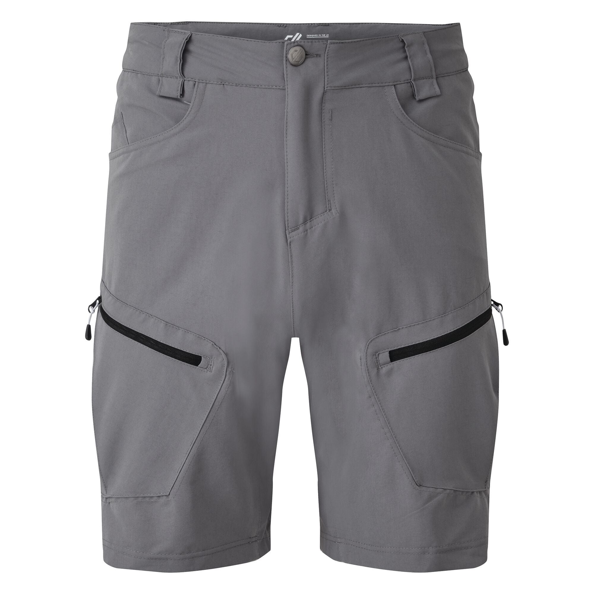 Pantalones cortos para hombre de Dare 2b, hechos en algodón aportando una mayor comodidad y suavidad, ideal para los días de senderismo, bolsillos laterales con cremallera para asegurar tus pertenencias. Color gris aluminio.