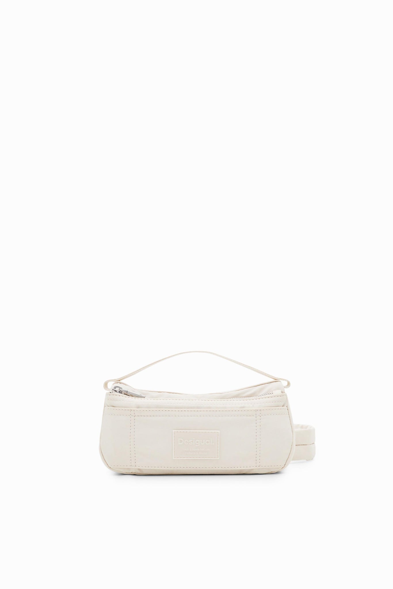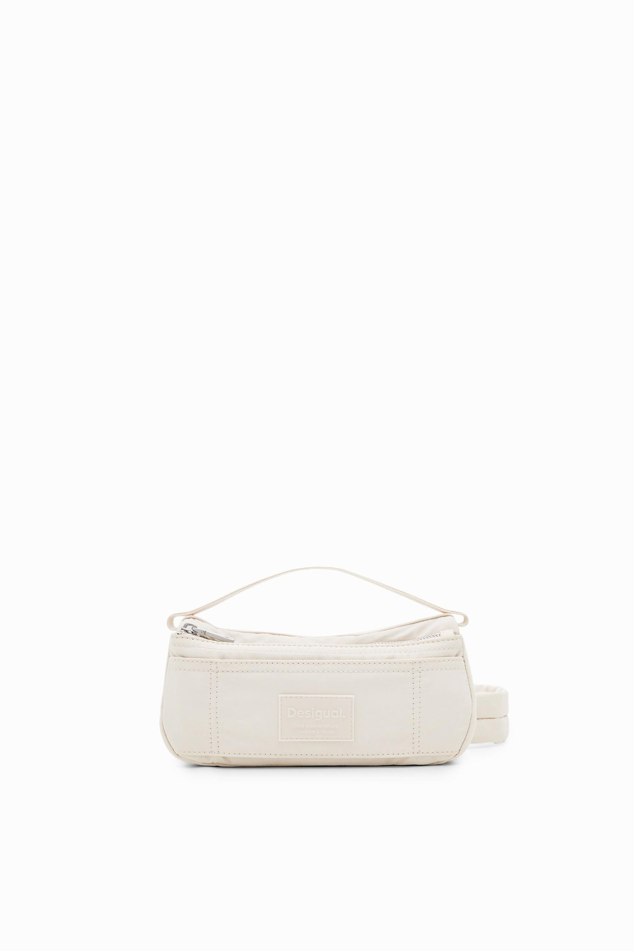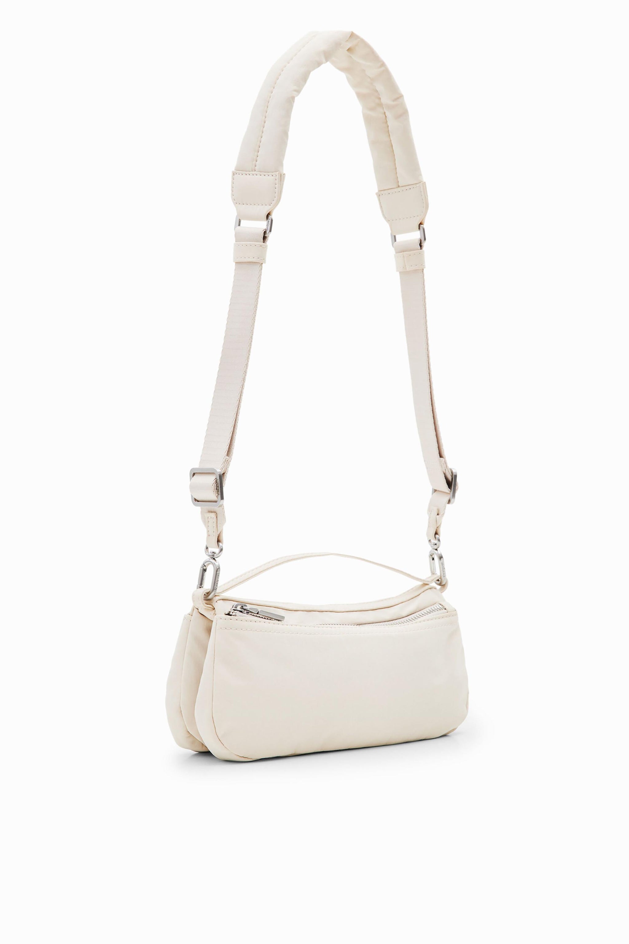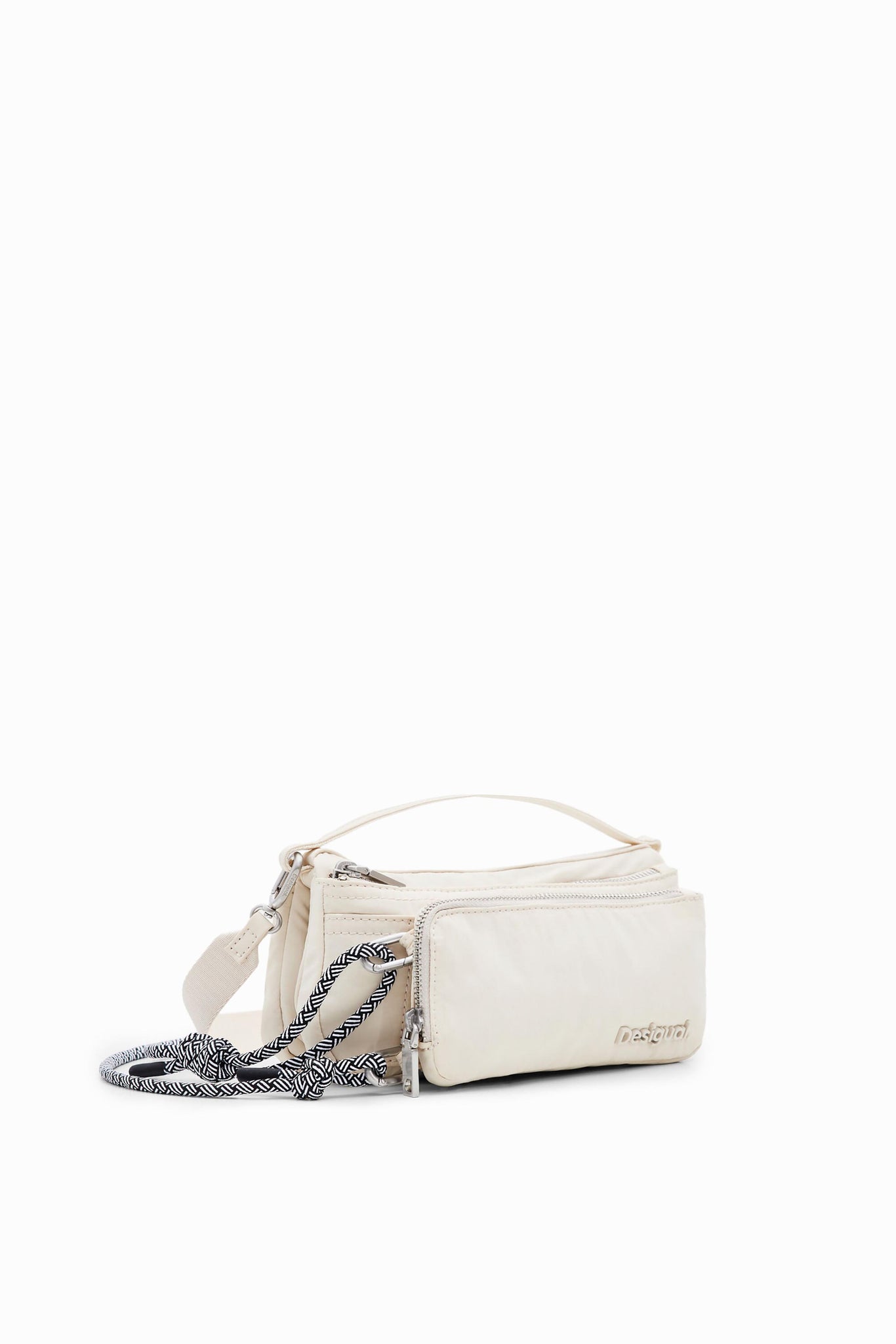 Bolso bandolera pequeño liso de nylon que incluye portamóvil de quita y pon, varias asas, compartimentos y bolsillos.