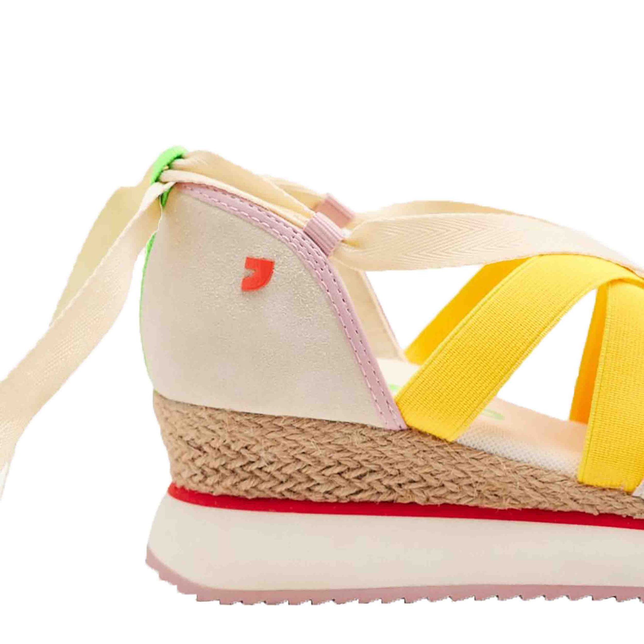 Estas sandalias están confeccionadas en materiales sintéticos de alta calidad, ofreciendo durabilidad y un acabado sofisticado. El diseño de tiras en tonos multicolor añade un toque vibrante y alegre a tu atuendo, permitiendo combinarlas con una amplia gama de colores. El cierre de hebilla ajustable en el tobillo garantiza una sujeción segura y personalizada, adaptándose a la forma de tu pie para mayor comodidad.