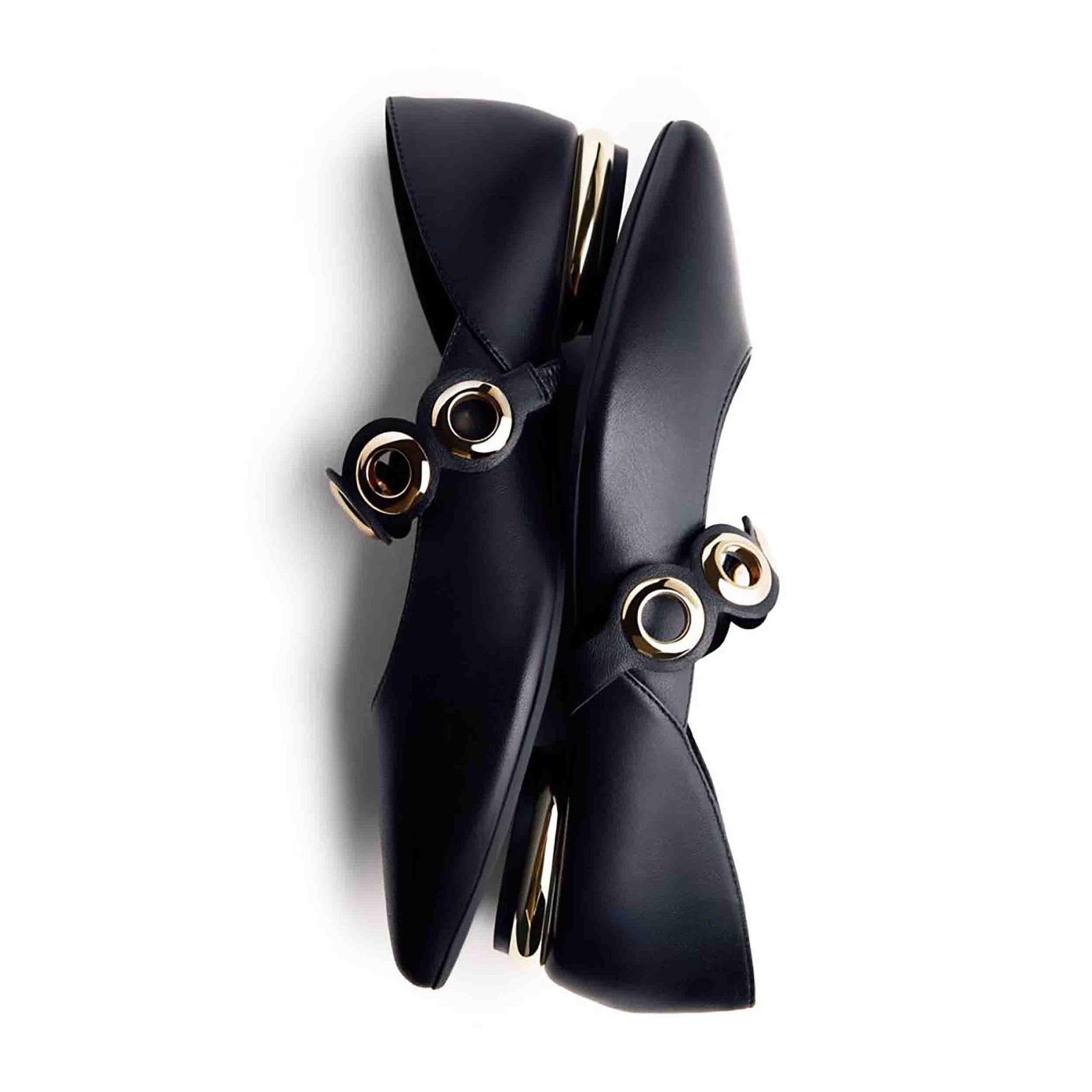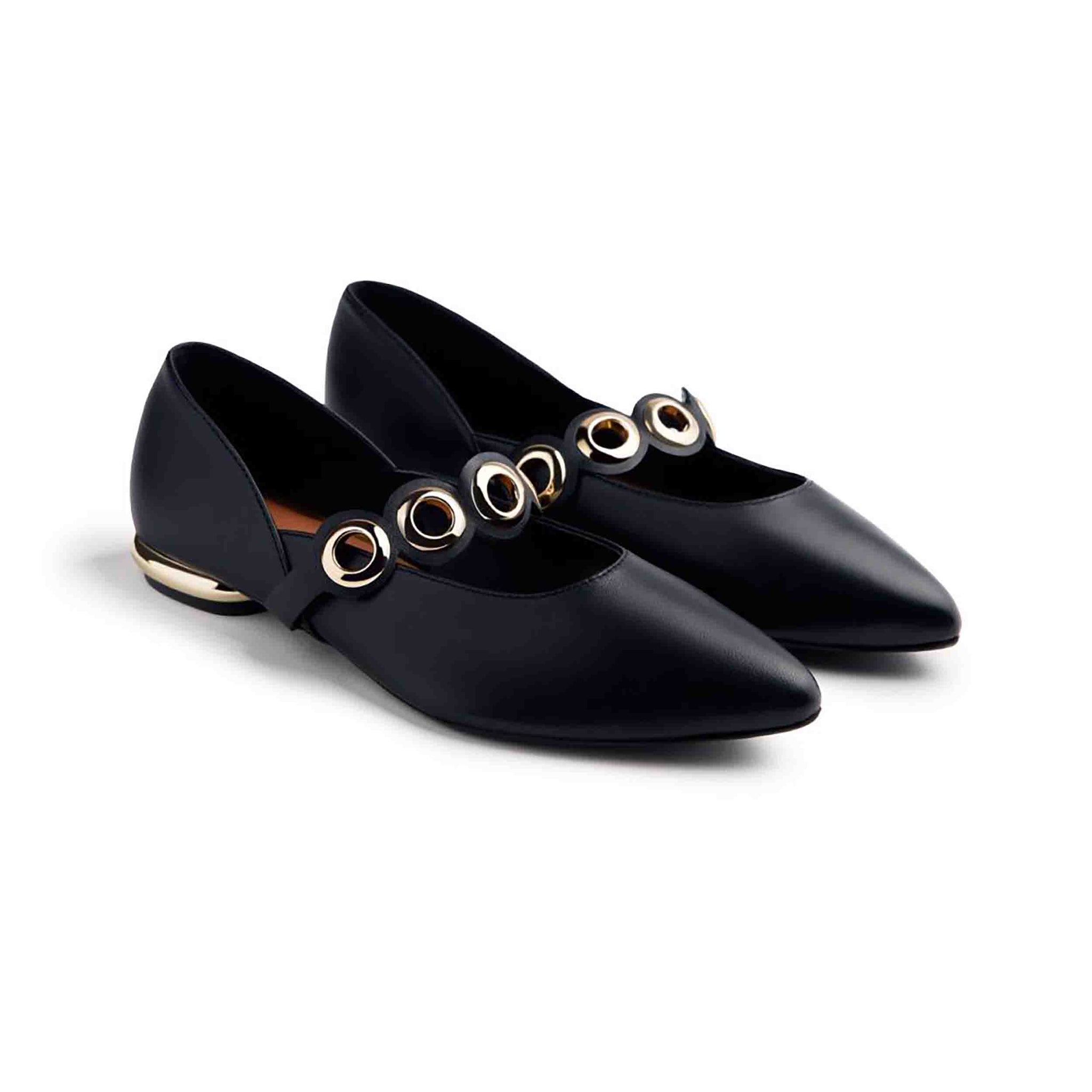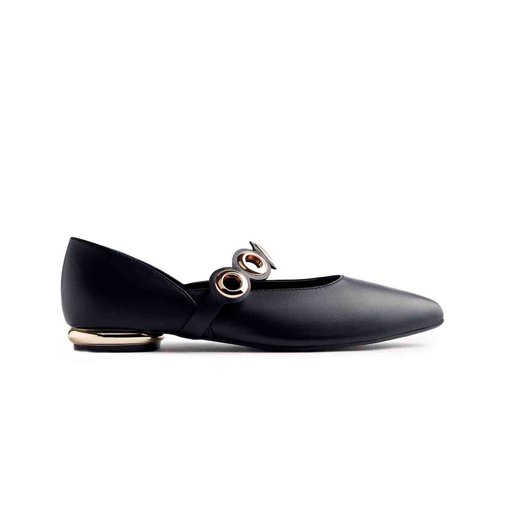 Incorpora una tira ajustable sobre el empeine que te garantiza mayor sujeción y estabilidad al caminar, además de añadir un detalle visual distintivo. Los ojales metálicos en tono dorado realzan la estética del zapato y le dan un toque de modernidad sin resultar recargado. El tacón metálico de aproximadamente 1,5 cm proporciona una ligera elevación que mejora la postura y asegura comodidad durante largas jornadas.