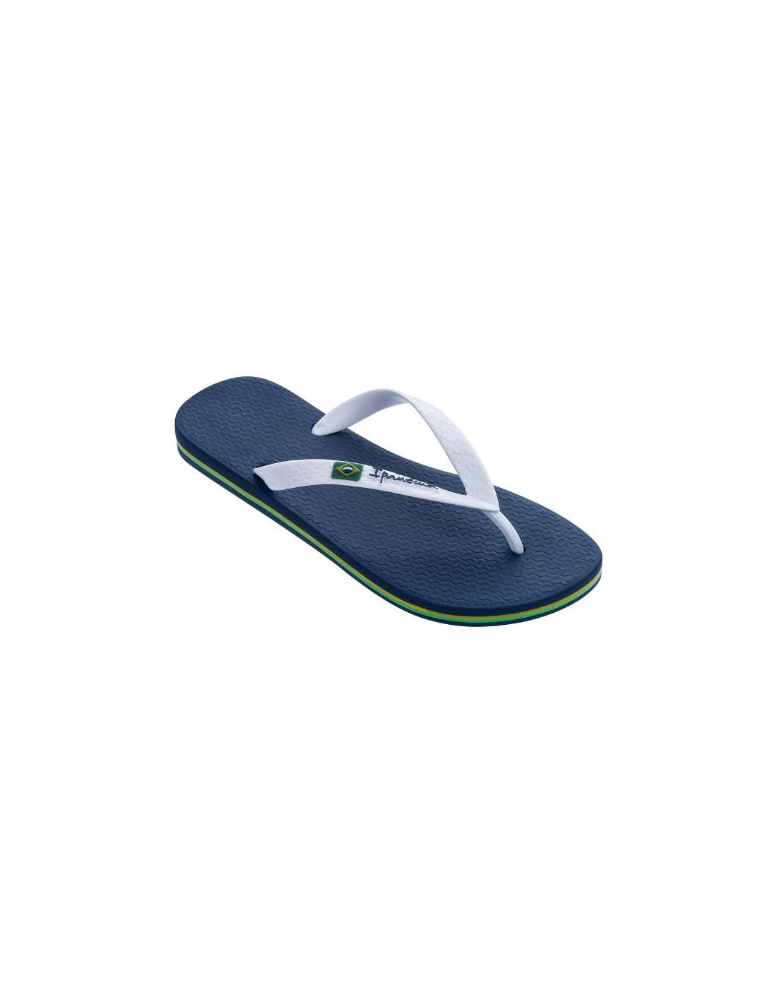 Sandalias de dedo Ipanema Class Brasil II en caucho azul y blanco con tiras en contraste y la bandera de Brasil en la tira.