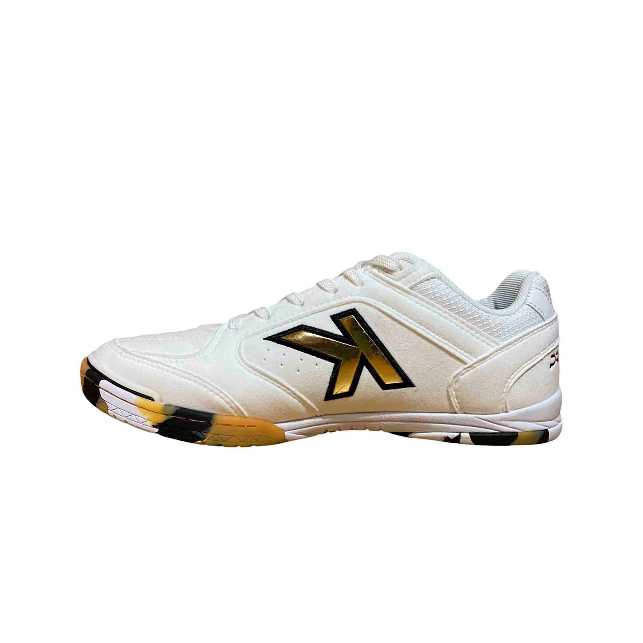 El patrón de diseño en blanco, negro y dorado dota a esta versión de una estética elegante y versátil que encaja tanto en equipos con identidad neutra como en combinaciones más llamativas. La inclusión de un segundo par de cordones en negro permite personalizar el ajuste y sustituirlos cuando sea necesario, aportando flexibilidad.