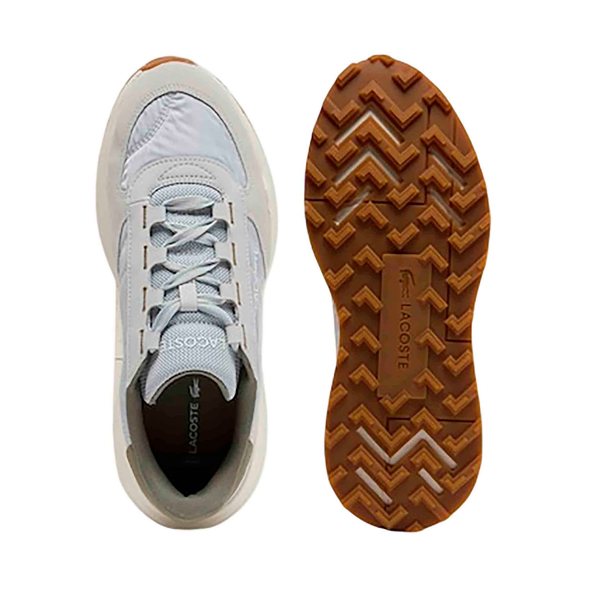 Identificas el sello de Lacoste gracias a los detalles de marca en silicona estampada en el lateral, un acento sutil que eleva el diseño sin sobrecargarlo. Notas la ligereza del modelo, con un peso aproximado de 360 g por zapatilla que facilita movilidad permanente sin sensación de fatiga.