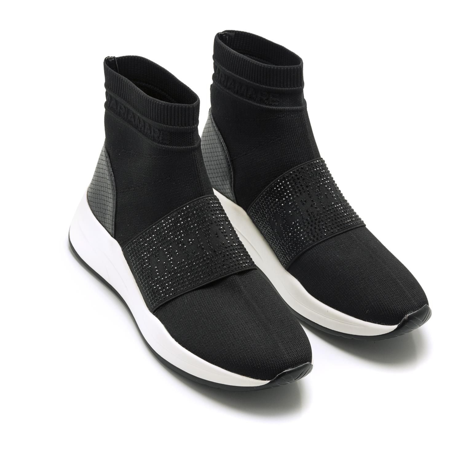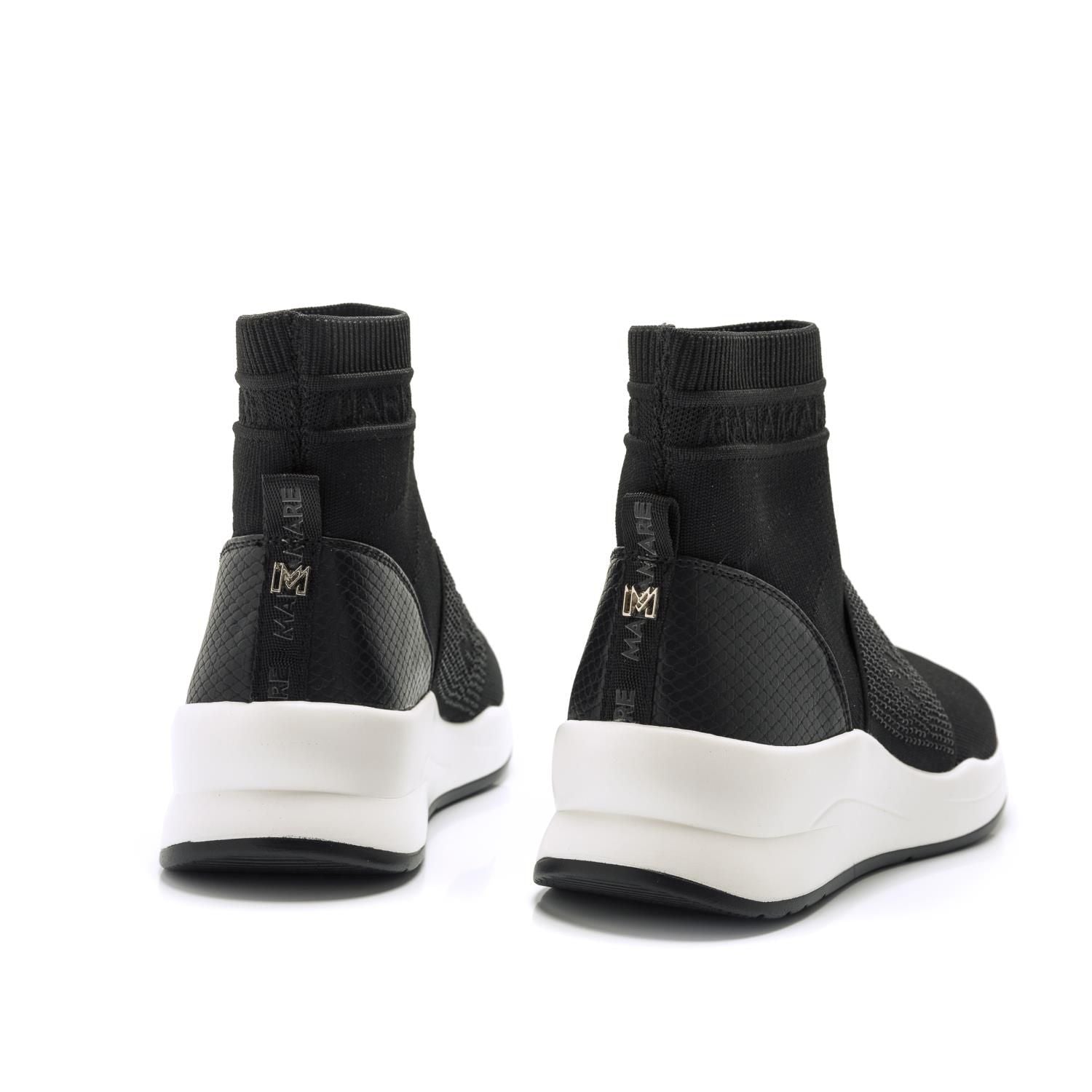 Deportiva de Mariamare de estilo abotinado en textil elástico con cinta elástica en el empeine para una mejor sujeción. Talón reforzado con grabado de coco. Piso grueso en color blanco y puntera ligeramente levantada. Añade personalidad a cualquier outfit de esta temporada con estas deportivas.