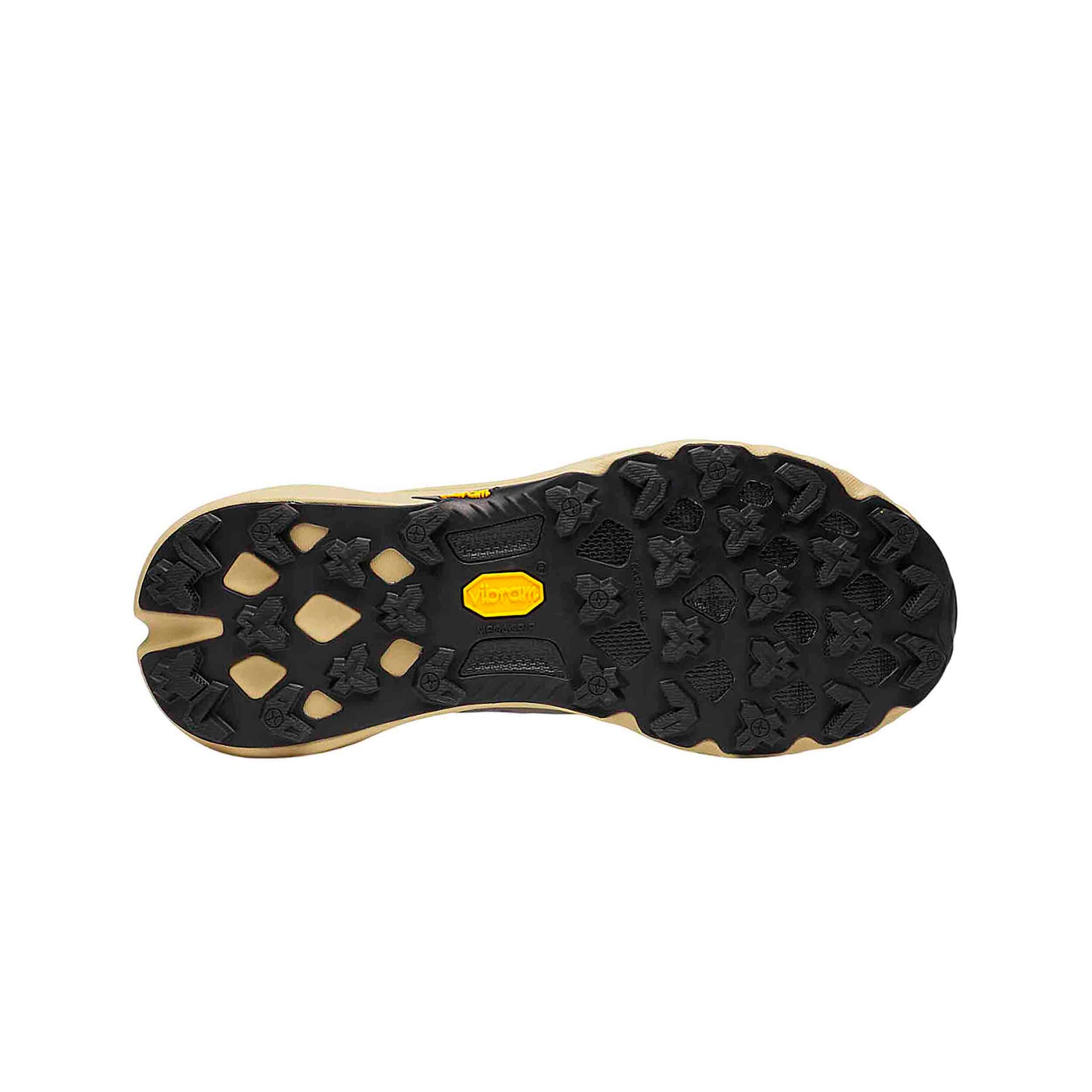 La suela Vibram® MegaGrip de alto rendimiento garantiza agarre sobresaliente tanto en condiciones secas como húmedas; los tacos Vibram diseñados estratégicamente facilitan el drenaje de barro y agua para que tu pisada conserve firmeza. Drop de 6 mm y altura de stack de talón/puntera de 31/25 mm, logrando un buen equilibrio entre protección en descensos y sensibilidad en pisadas más planas.