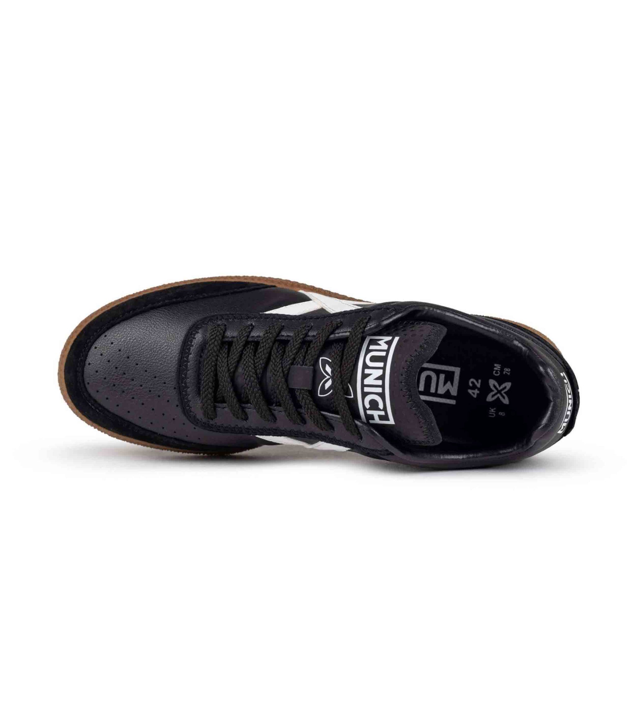 Este modelo RUMBA 01 (referencia 4078001) de Munich está diseñado para el hombre urbano que busca una mezcla perfecta entre elegancia y funcionalidad. Con un exterior fabricado en poliuretano, ante y textil, garantiza una gran resistencia al uso diario sin sacrificar estilo. La distintiva "X" en blanco sobre fondo negro destaca la identidad característica de la marca y aporta un contraste atemporal que combina con cualquier outfit.