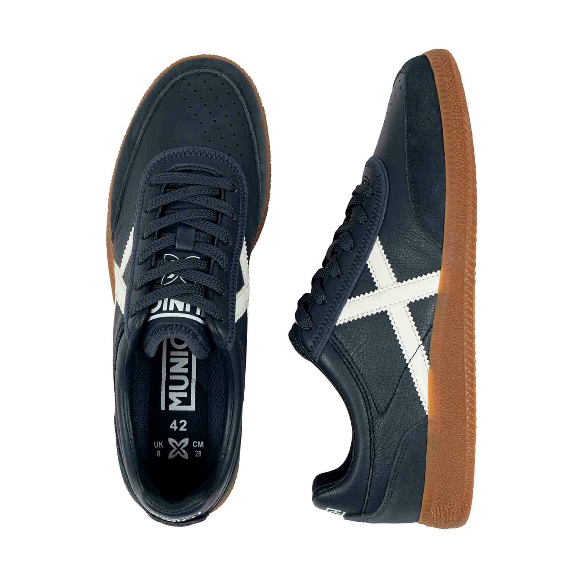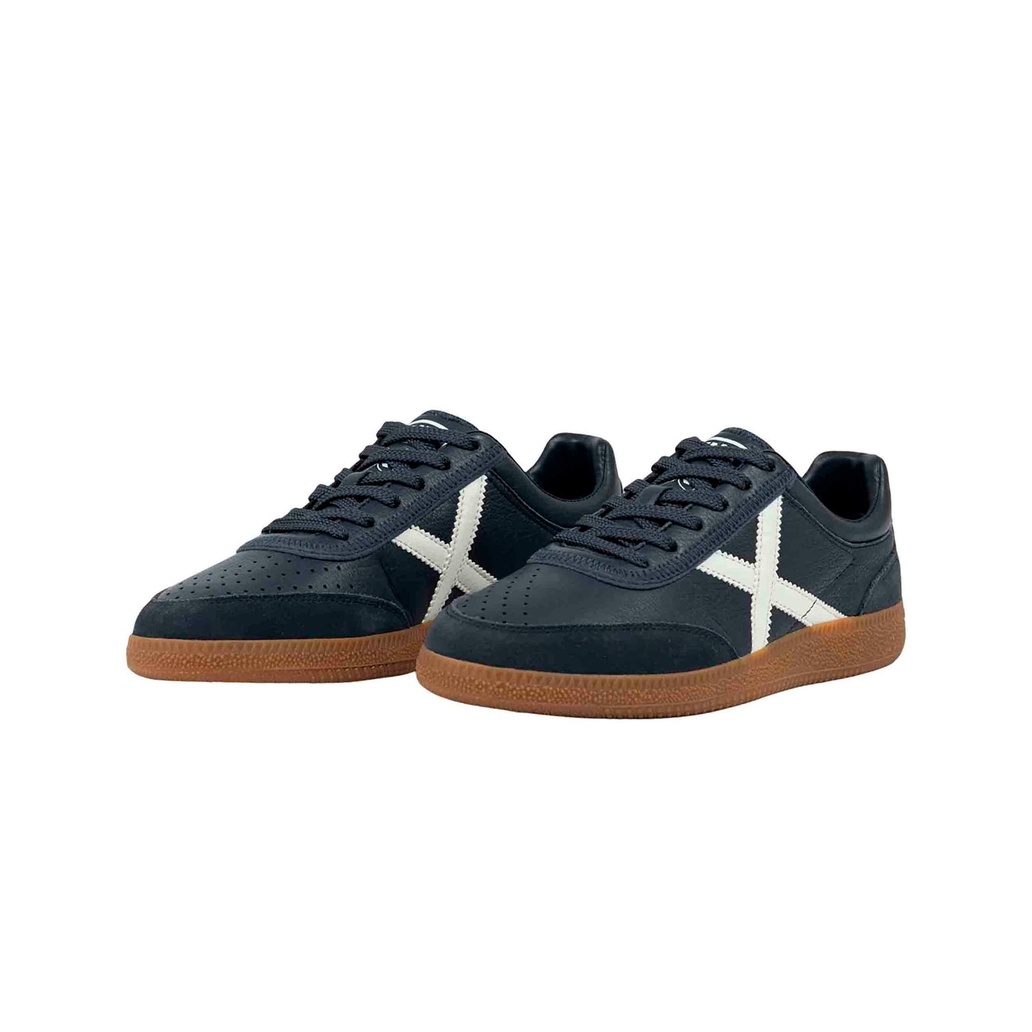 Este modelo Rumba 15 (referencia 4078015) de Munich está diseñado para el hombre urbano que busca una mezcla perfecta entre elegancia y funcionalidad. Con un exterior fabricado en poliuretano, ante y textil, garantiza una gran resistencia al uso diario sin sacrificar estilo. La distintiva "X" en blanco sobre fondo azul destaca la identidad característica de la marca y aporta un contraste atemporal que combina con cualquier outfit.