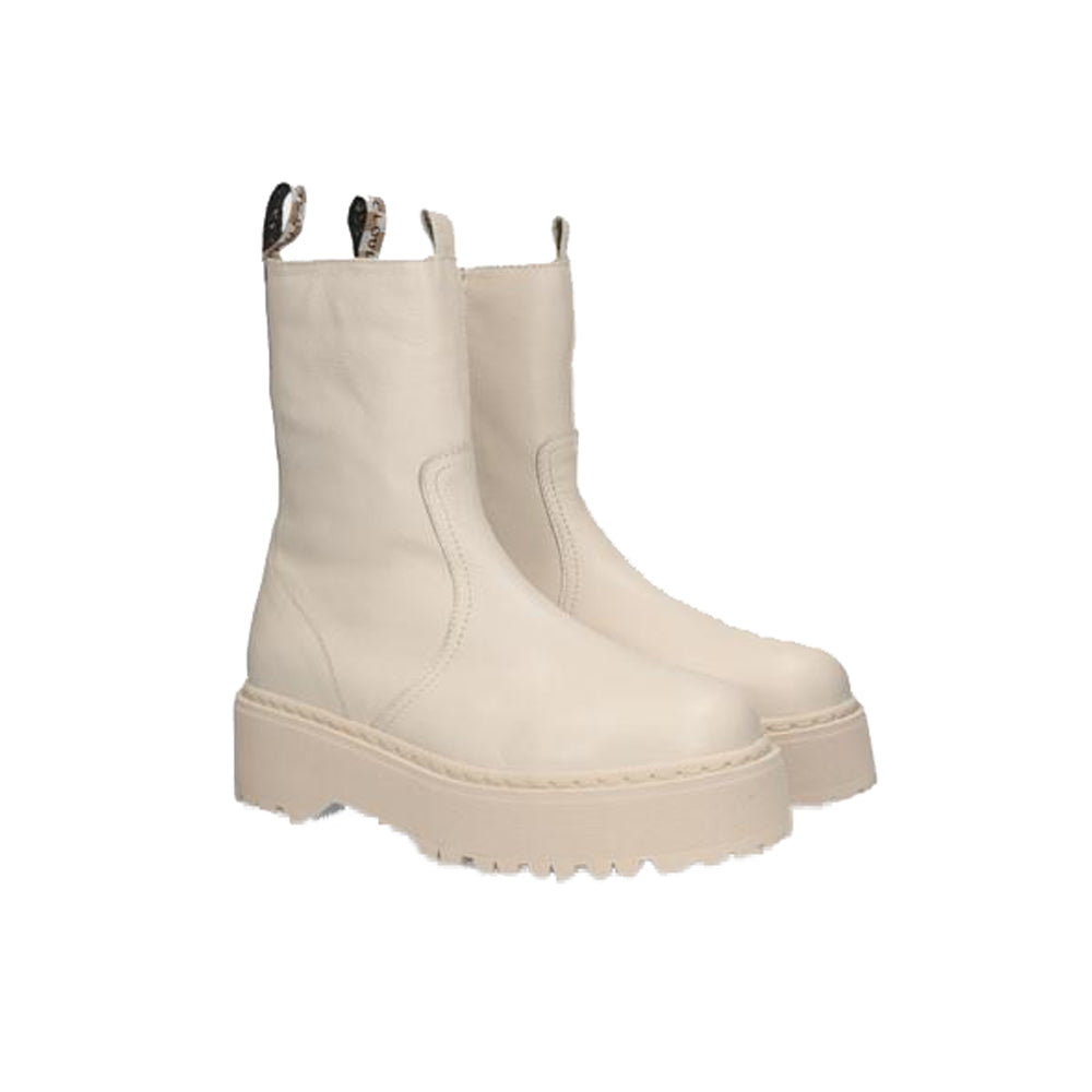 Bota de caña media para mujer de Musse & Coud, hechas en piel sintética generando mayor resistencia, su mediasuela de goma EVA aporta mayor comodidad y firmeza en cada pisada. Color blanco.